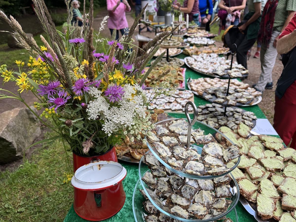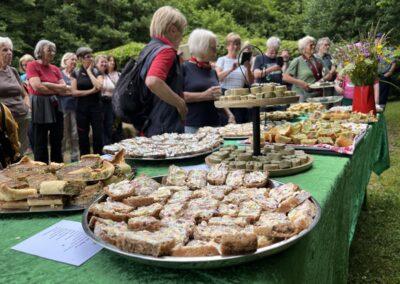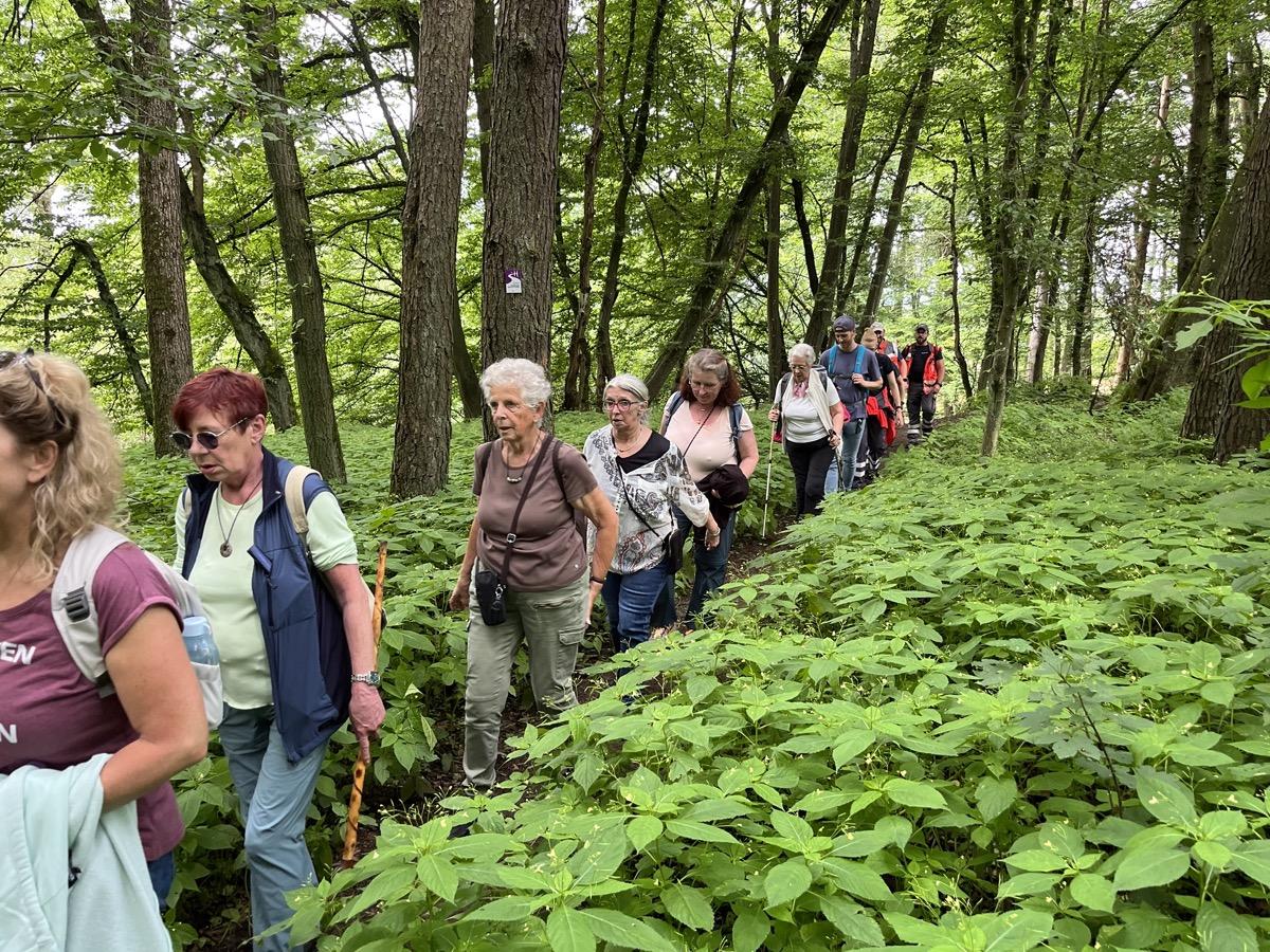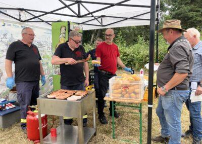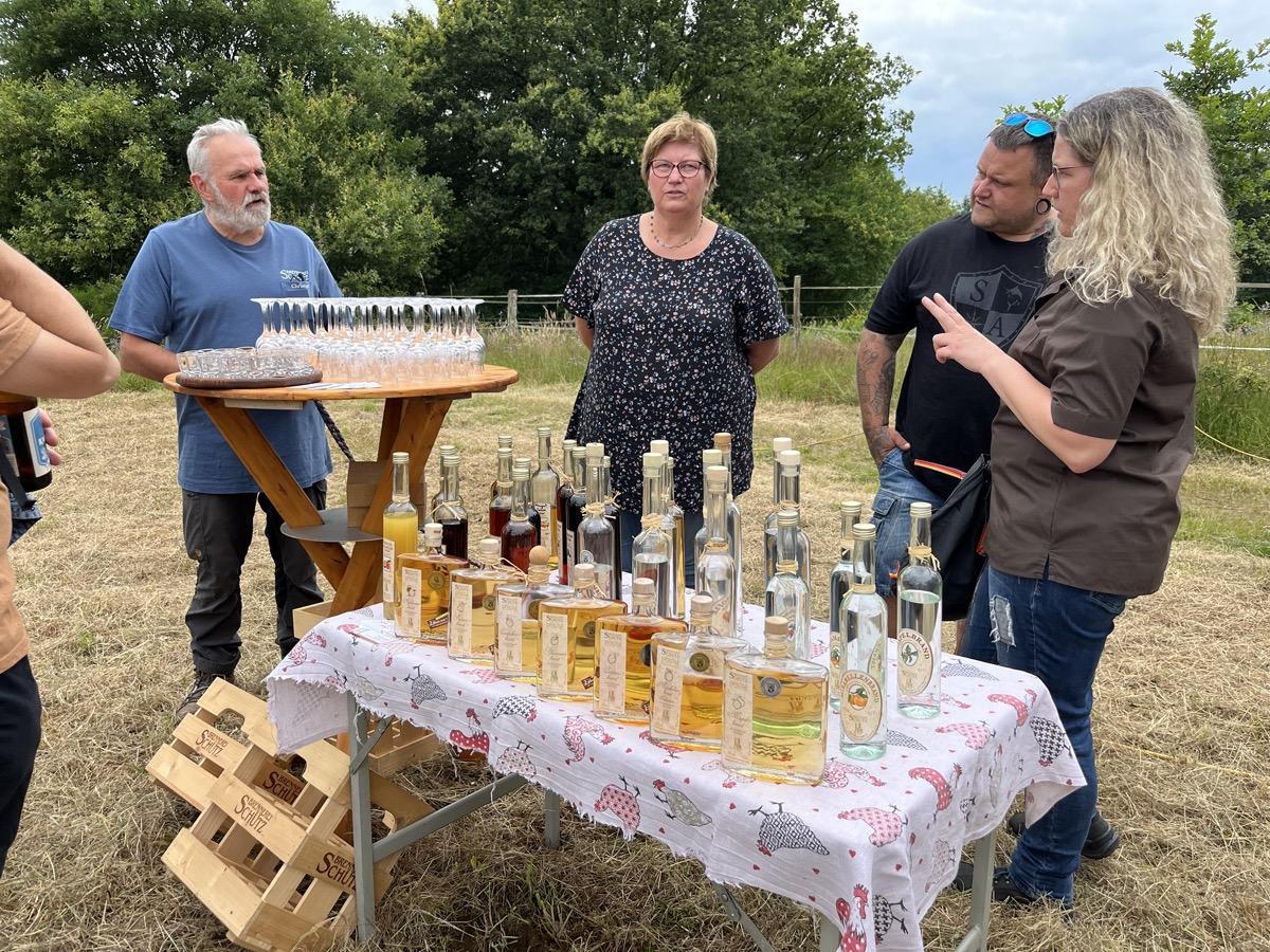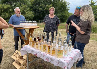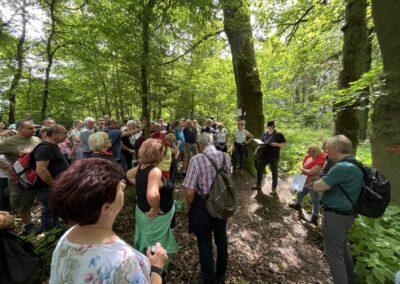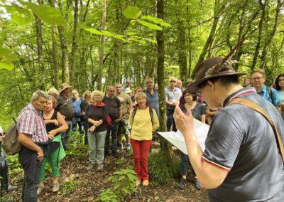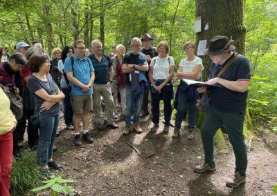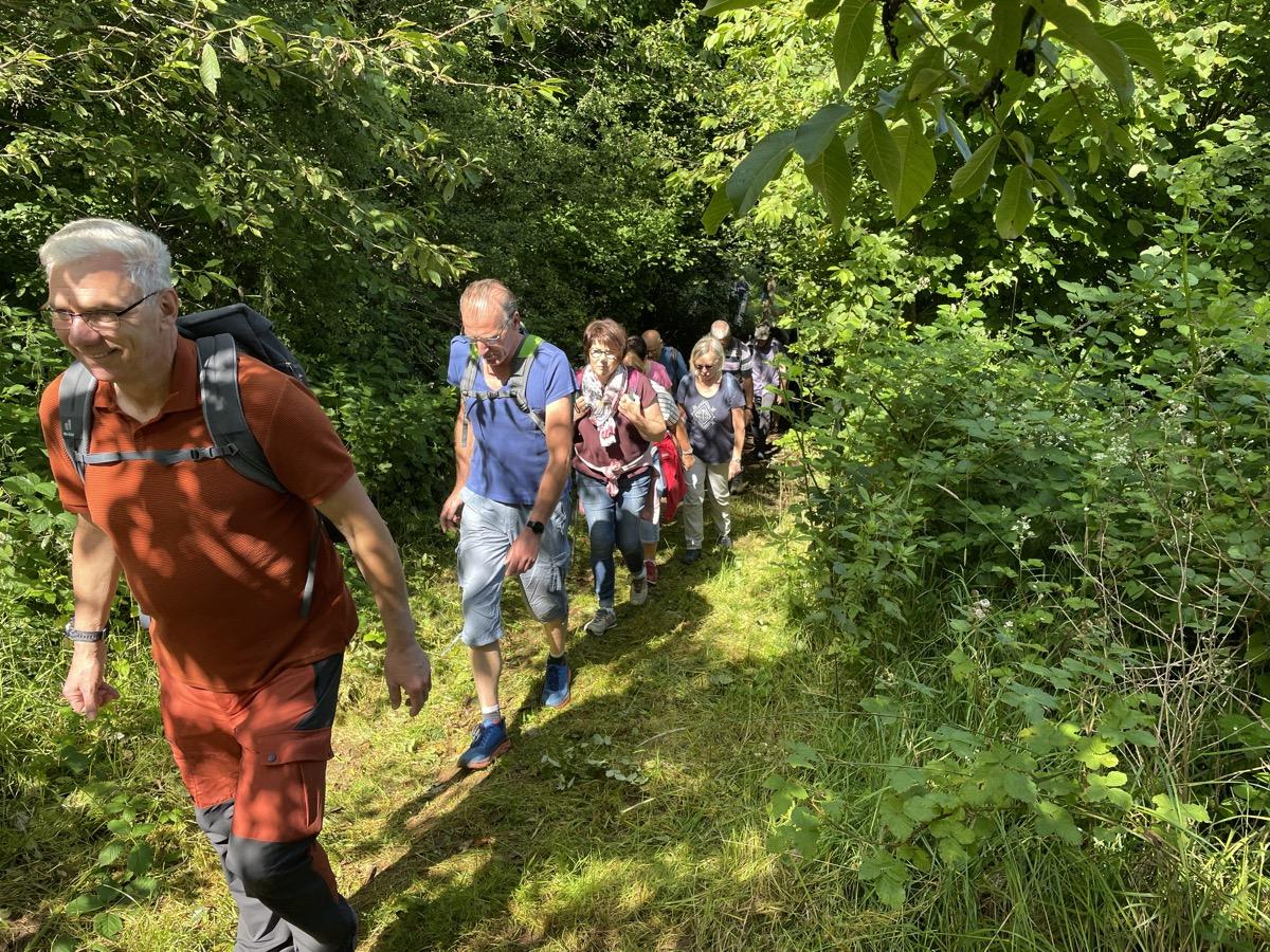 Auf rund neun Kilometern wusste Wanderführer Patrik Feltes viel zu erzählen von der Geschichte des Ortes und der Region und führte die Gruppe zusammen mit dem Saarlouiser Landrat Patrik Lauer und Kolja Koglin (beim Landkreis zuständig für die Vermarktung des Aktivtourismus) über den sehr abwechslungsreichen und attraktiven Premiumwanderweg. Zu dem Wandererlebnis der Extraklasse durch die herrliche Natur des Ortes gesellten sich verschiedene Genussstationen, an denen die Teilnehmerinnen und Teilnehmer erfahren konnten, wie lecker die Region schmeckt. Vom Büffet mit selbstgemachten Leckereien rund um die heimische Kräuterwelt über Wildprodukte der örtlichen Jäger bis hin zu regionalen Produkten zahlreicher Mitgliedsbetriebe der Regionalinitiative „Ebbes von Hei!“ war für jeden Gaumen das Passende dabei.
