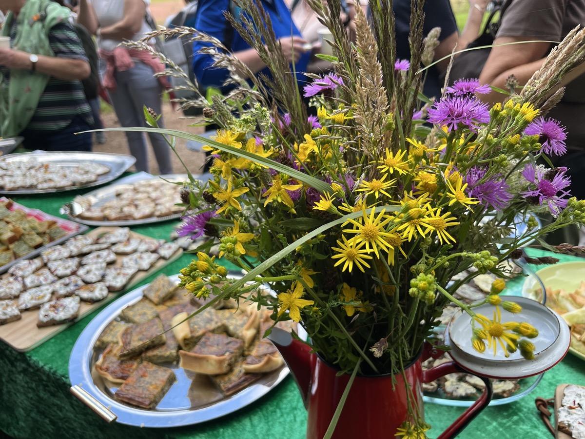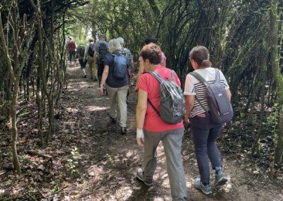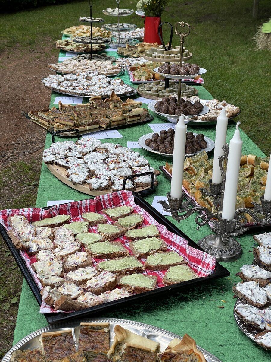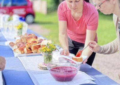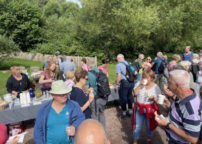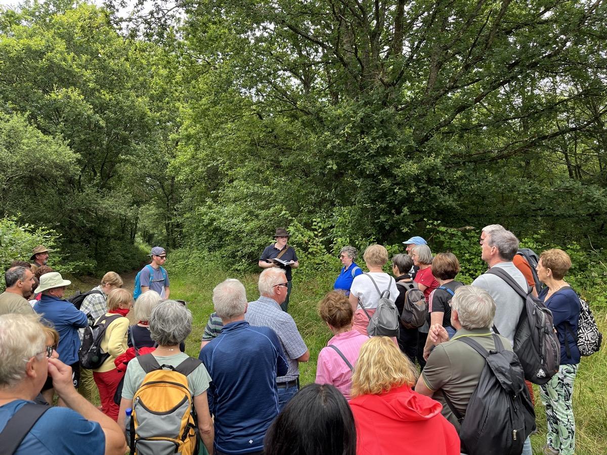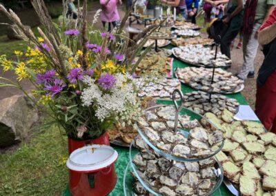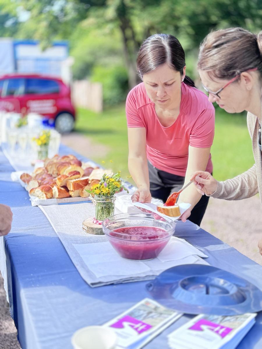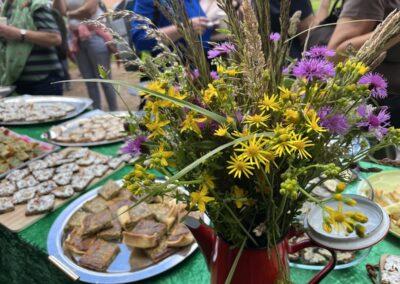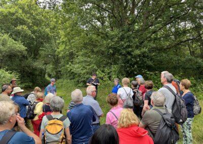 Auf rund neun Kilometern wusste Wanderführer Patrik Feltes viel zu erzählen von der Geschichte des Ortes und der Region und führte die Gruppe zusammen mit dem Saarlouiser Landrat Patrik Lauer und Kolja Koglin (beim Landkreis zuständig für die Vermarktung des Aktivtourismus) über den sehr abwechslungsreichen und attraktiven Premiumwanderweg. Zu dem Wandererlebnis der Extraklasse durch die herrliche Natur des Ortes gesellten sich verschiedene Genussstationen, an denen die Teilnehmerinnen und Teilnehmer erfahren konnten, wie lecker die Region schmeckt. Vom Büffet mit selbstgemachten Leckereien rund um die heimische Kräuterwelt über Wildprodukte der örtlichen Jäger bis hin zu regionalen Produkten zahlreicher Mitgliedsbetriebe der Regionalinitiative „Ebbes von Hei!“ war für jeden Gaumen das Passende dabei.