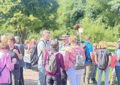 Die beliebte Kulinarik-Wanderung „Wieslein deck dich“ der Touristiker des Landkreises Saarlouis fand in diesem Jahr zum zehnten Mal statt. Der Saarlouiser Landrat Patrik Lauer lud die rund 90 Teilnehmerinnen und Teilnehmer dazu in die Gemeinde Wadgassen ein, wo im Ortsteil Werbeln bald der 13. Premiumwanderweg des Landkreises Saarlouis eröffnet wird – die Traumschleife Werbelner Geschichteweg.