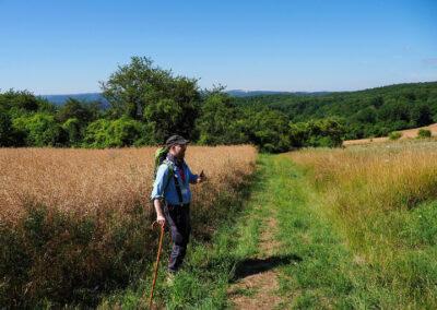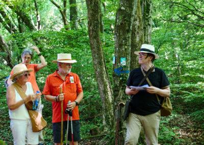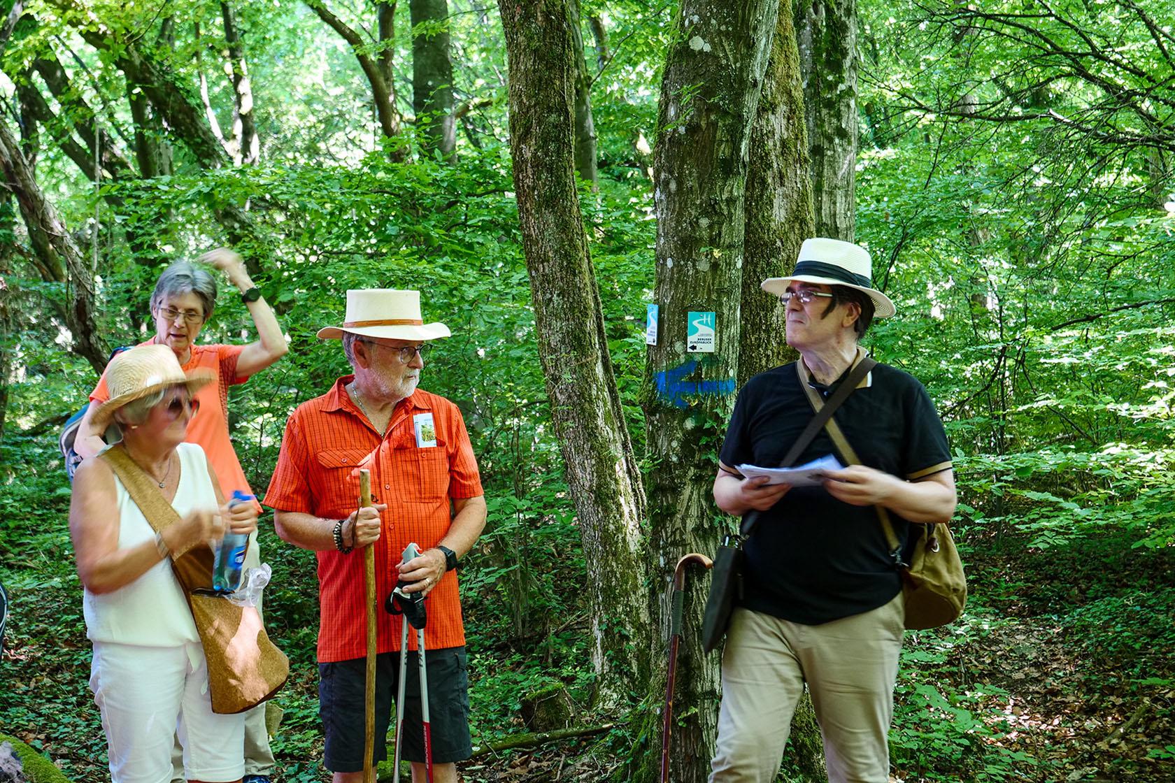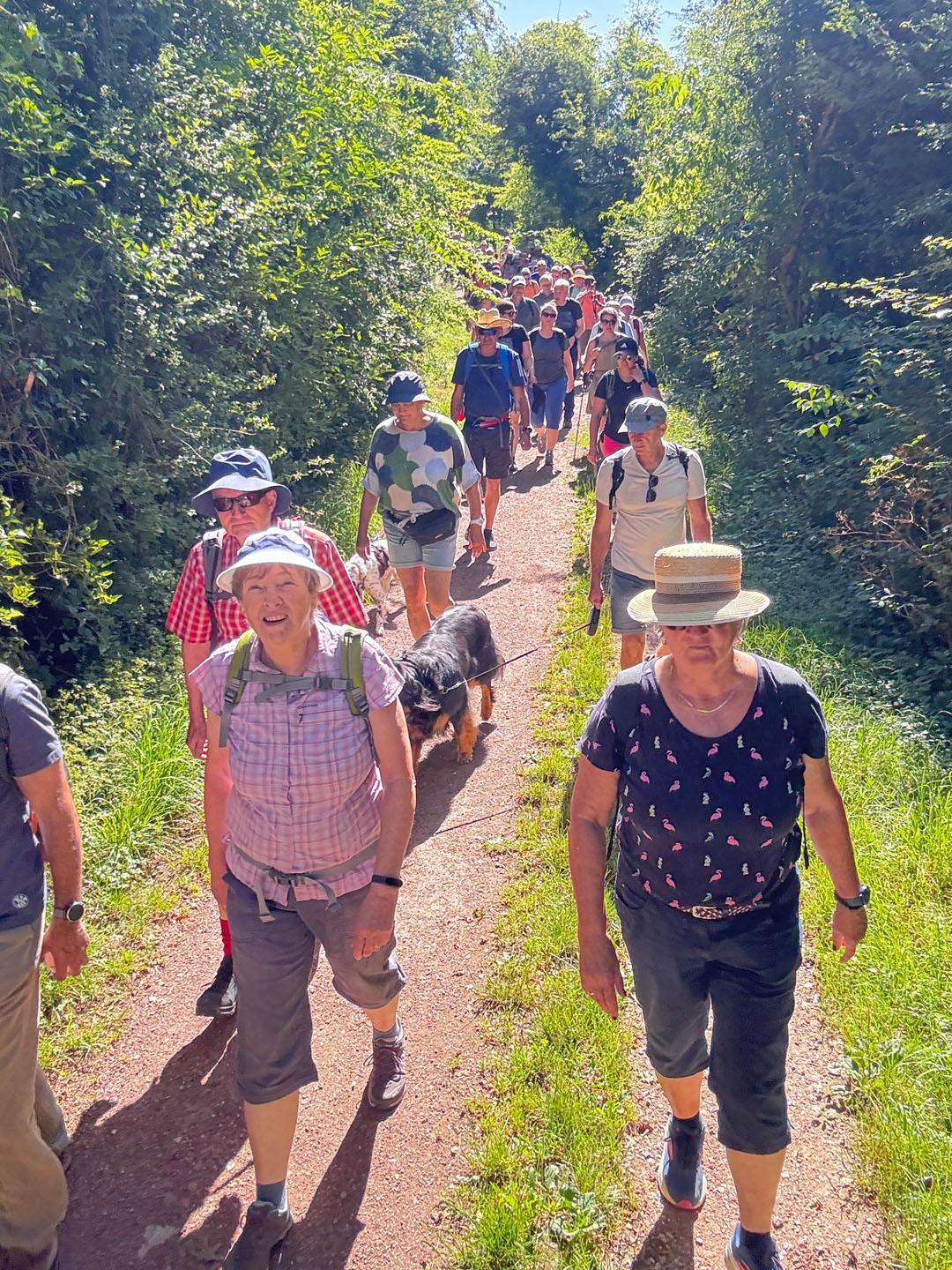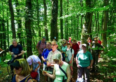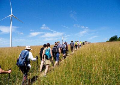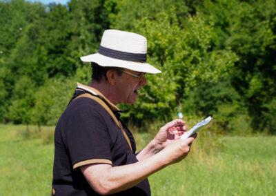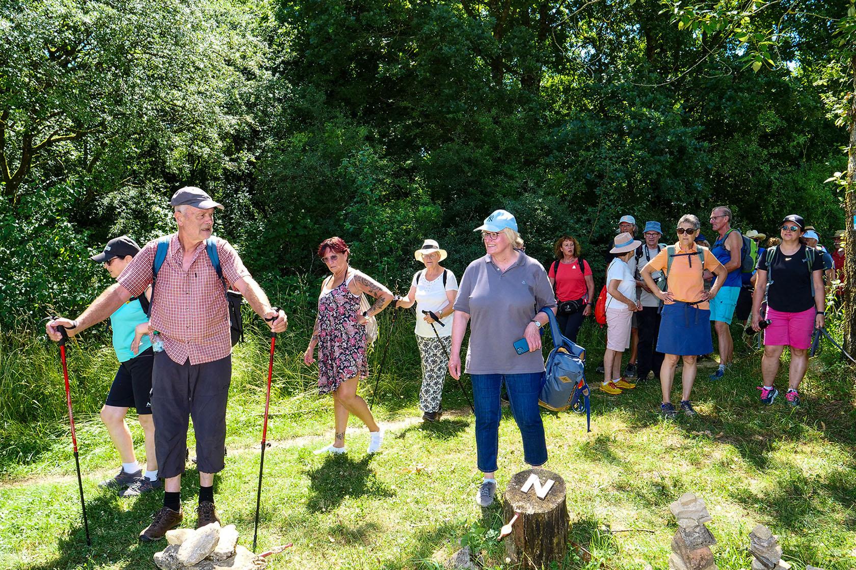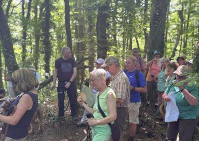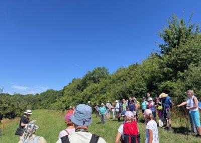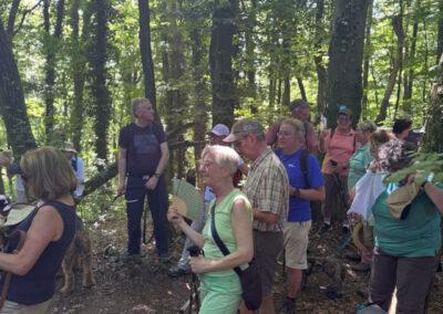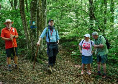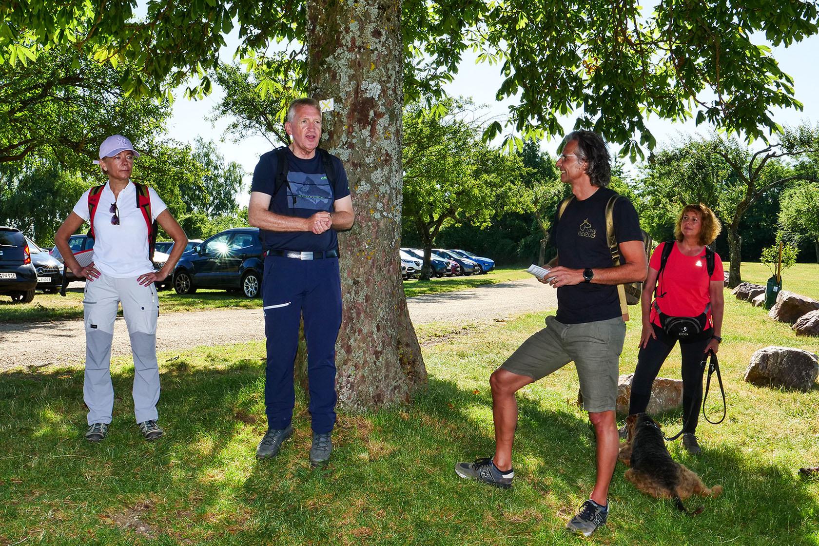 Nach dem Kaffee-Start am Europadenkmal – mit feinen Röstungen von Café Plaisir und hausgemachtem Marmorkuchen des Maison Creativ – lenkte Wanderführer Patrik Feltes die Gruppe zum Kalksteinbruch, wo Werner Fritz die Geschichte des Bergbaus und Schmugglergeschichten lebendig werden ließ. Am Waldkreuz lud der Obst- und Gartenbauverein Berus zu Viez, frischem Apfelsaft, knackigen Äpfeln und herzhaften Häppchen, ehe Paulina am Lothringer Kreuz ihre Quitten-, Mirabellen- und Kräuterliköre samt ofenfrischem Baguette präsentierte.