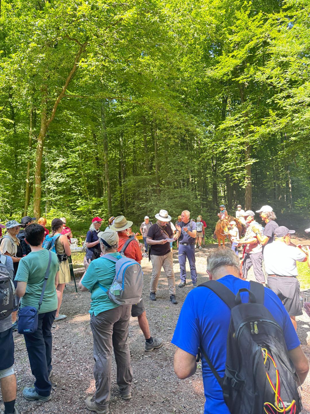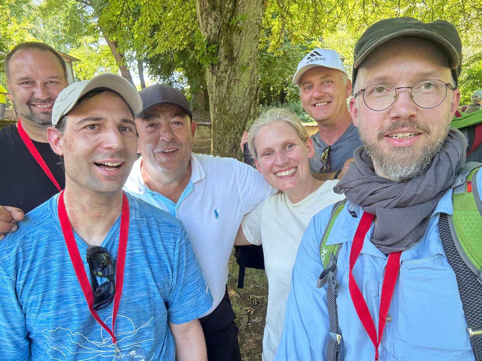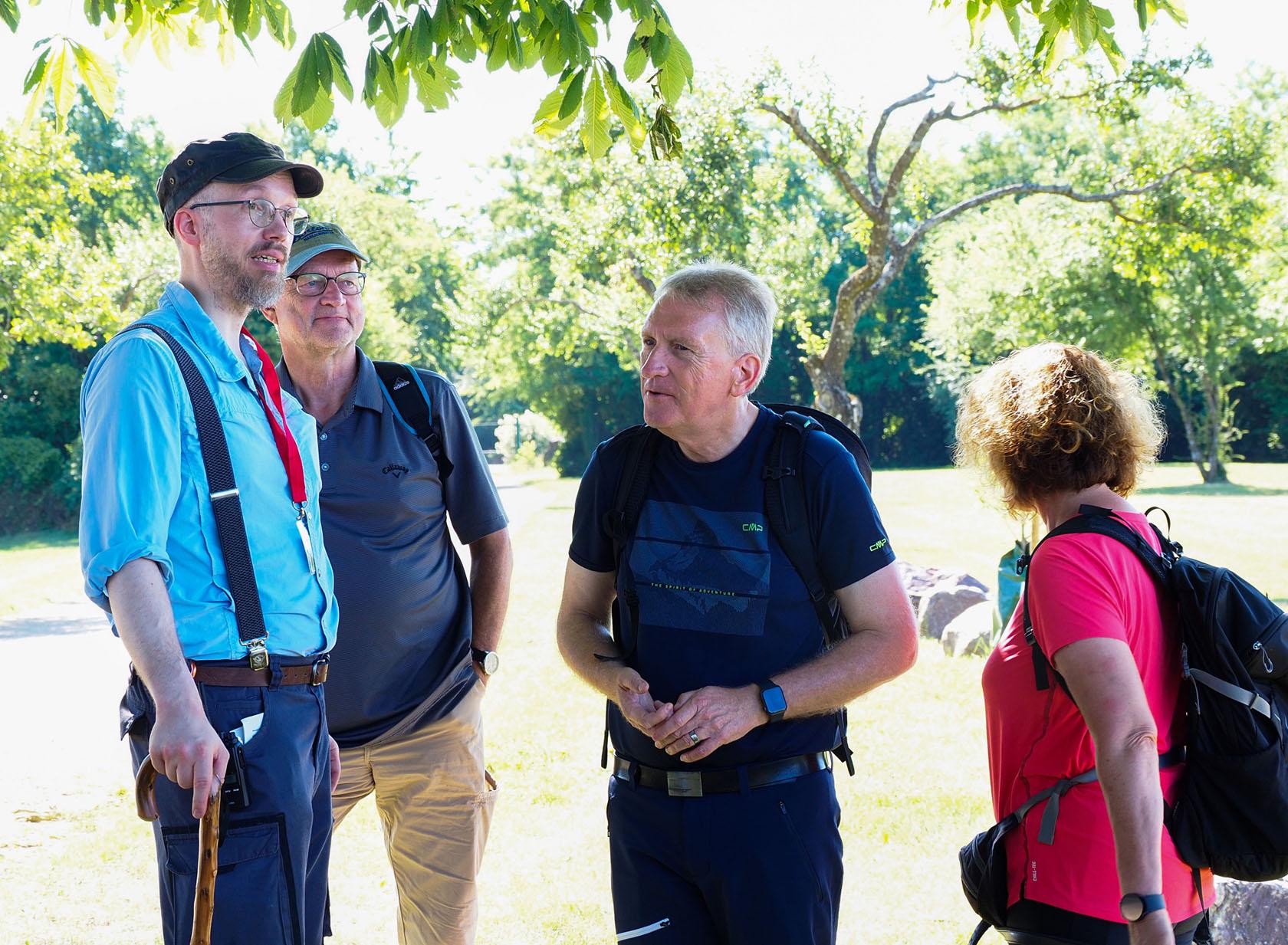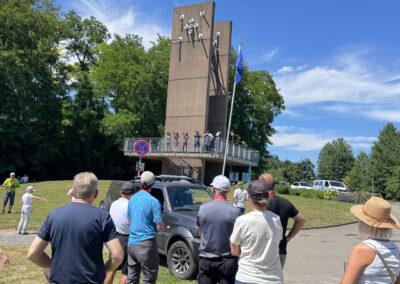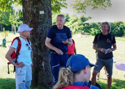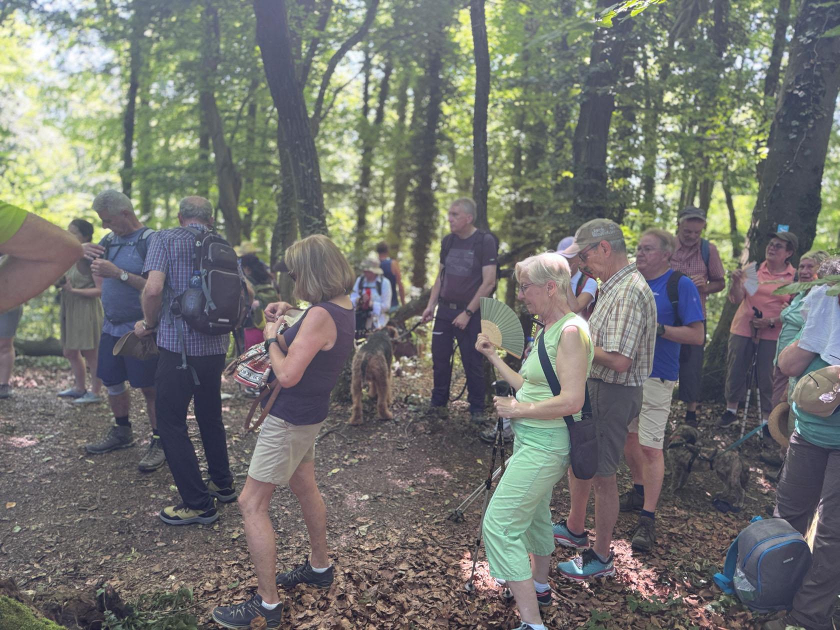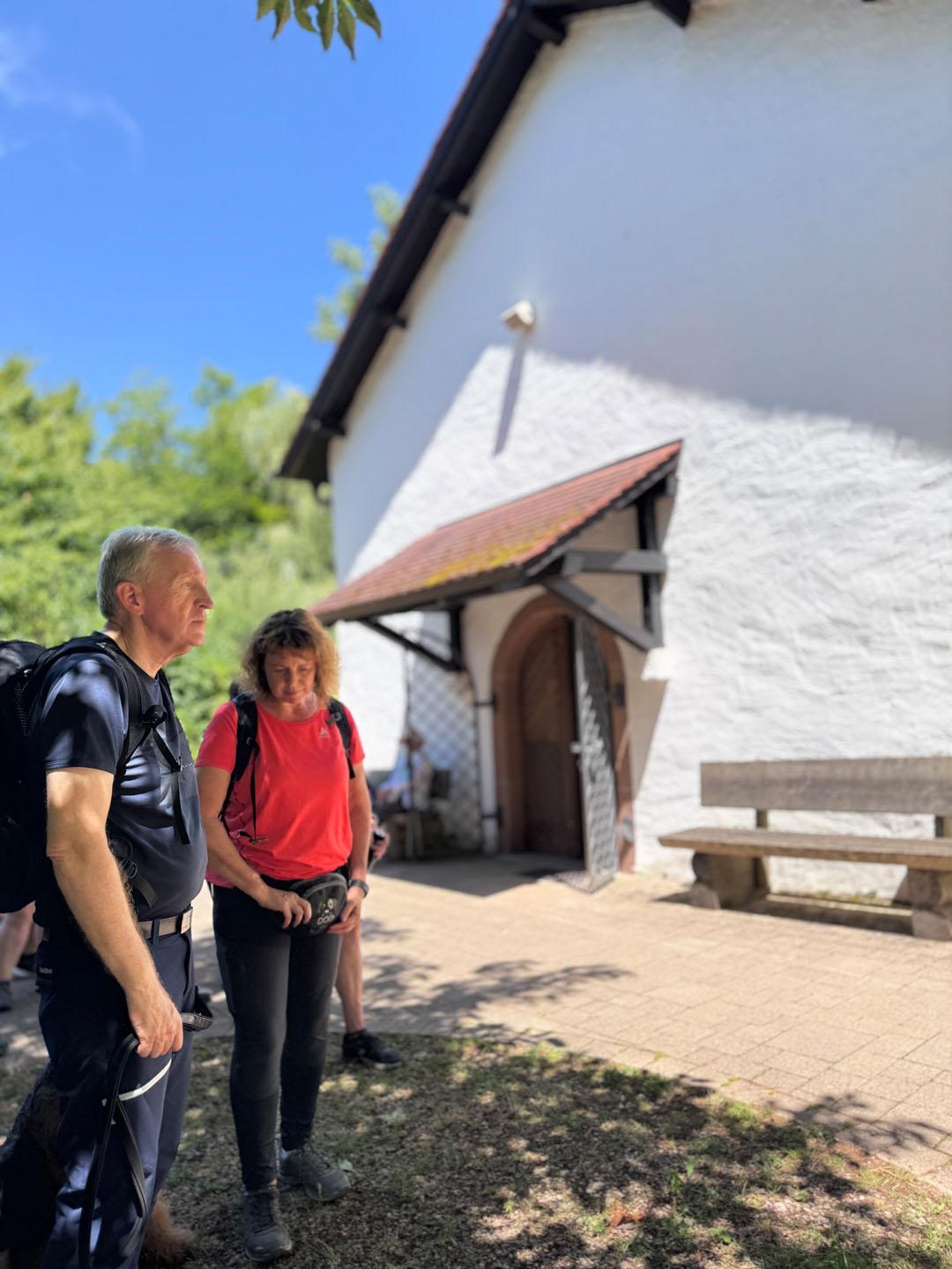 Ein kulinarischer und musikalischer Höhepunkt folgte an der St.-Oranna-Kapelle: Picknickkörbe vom Tintinger Hof, Éclairs & Croissants aus der Bäckerei in Merten. Zurück am Europadenkmal empfingen die Beruser Jäger die Gruppe mit einem Horn-Ständchen und saftigen Wildwürsten vom Grill. Mundart-Chansons von Edwin Bohlinger und Johannes Berrar rundeten die Veranstaltung mit einem musikalischen Genussmoment ab.