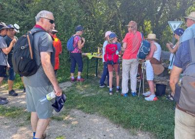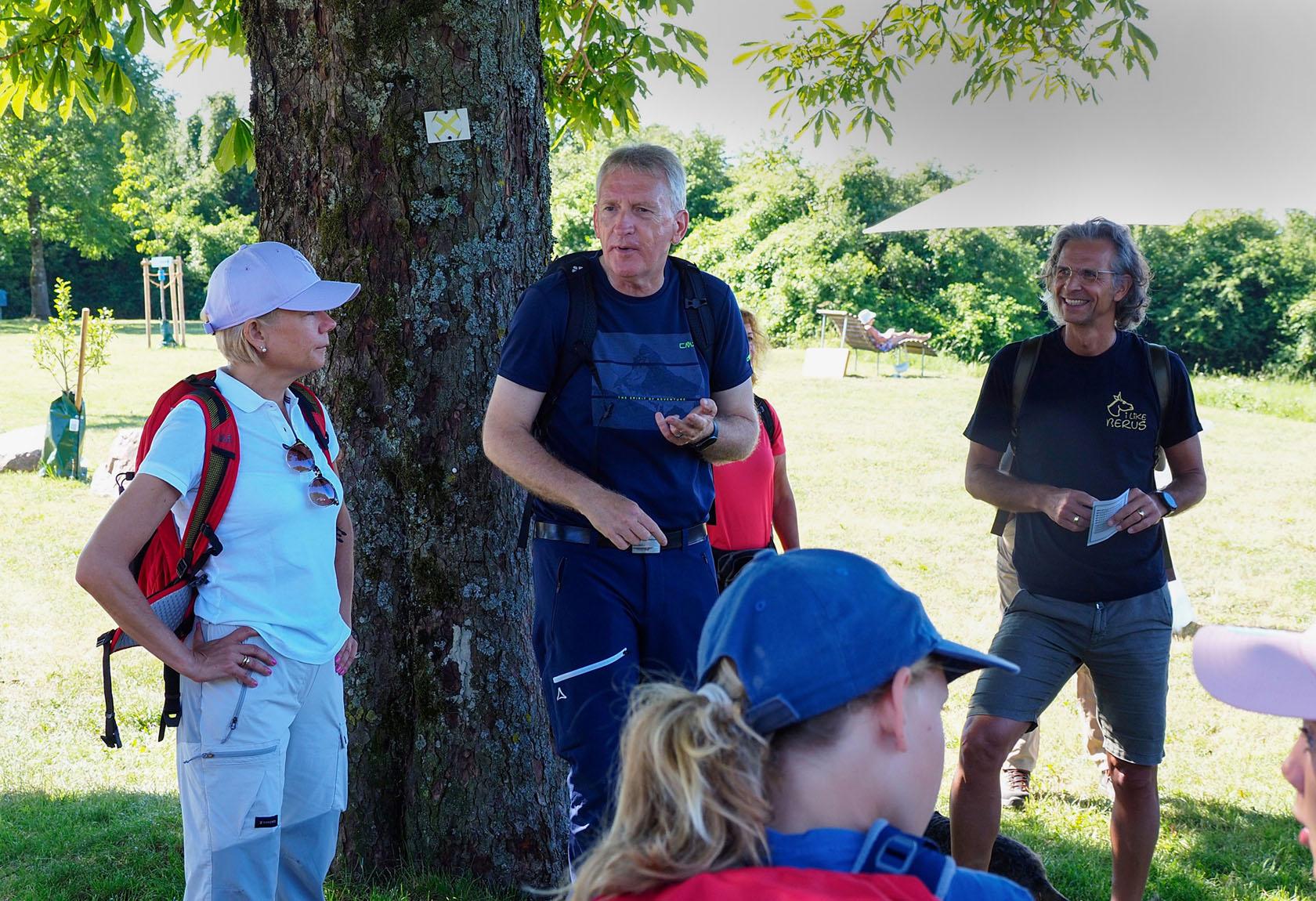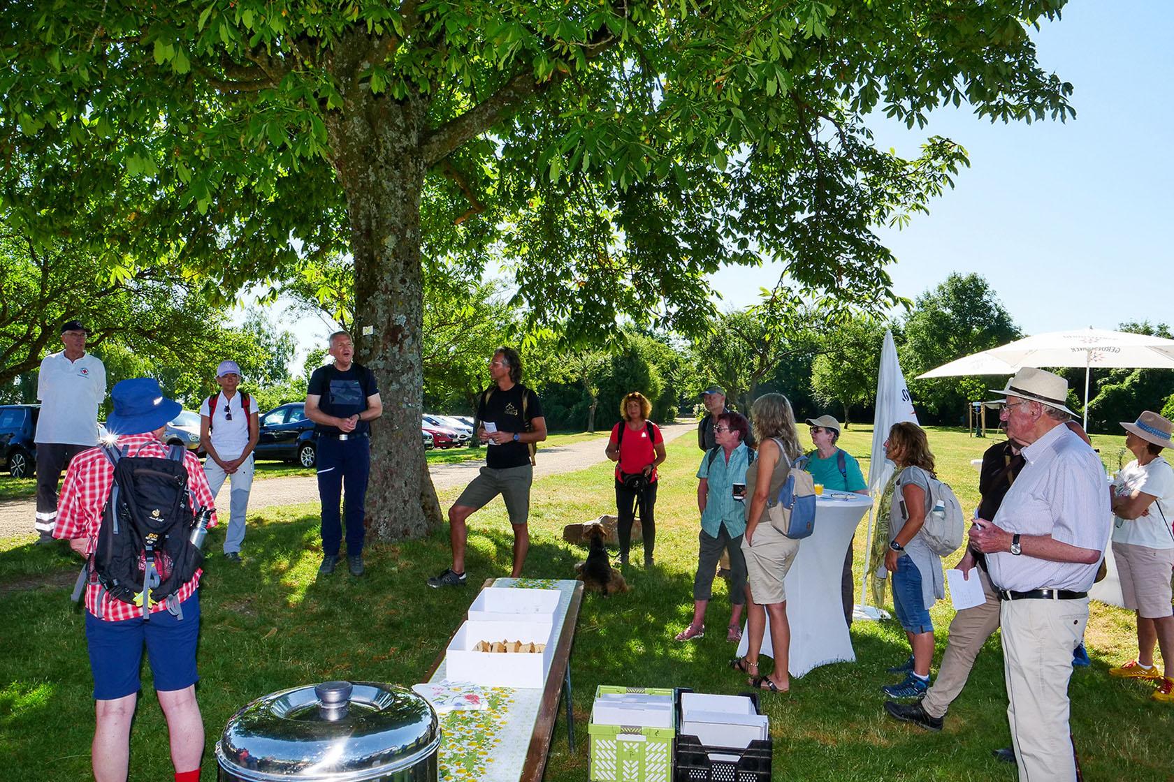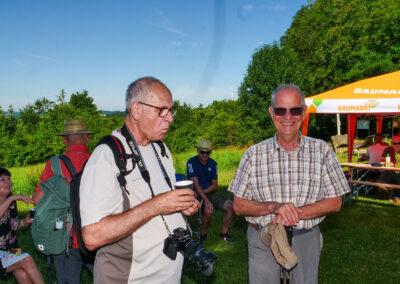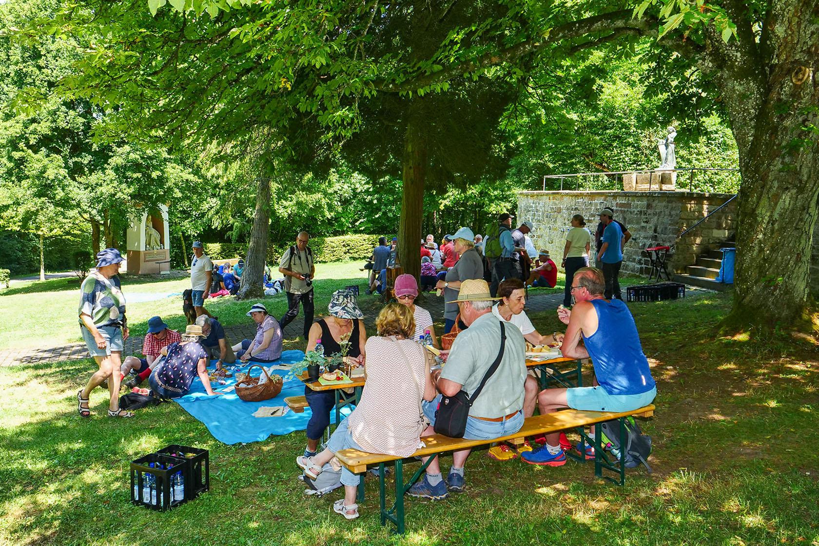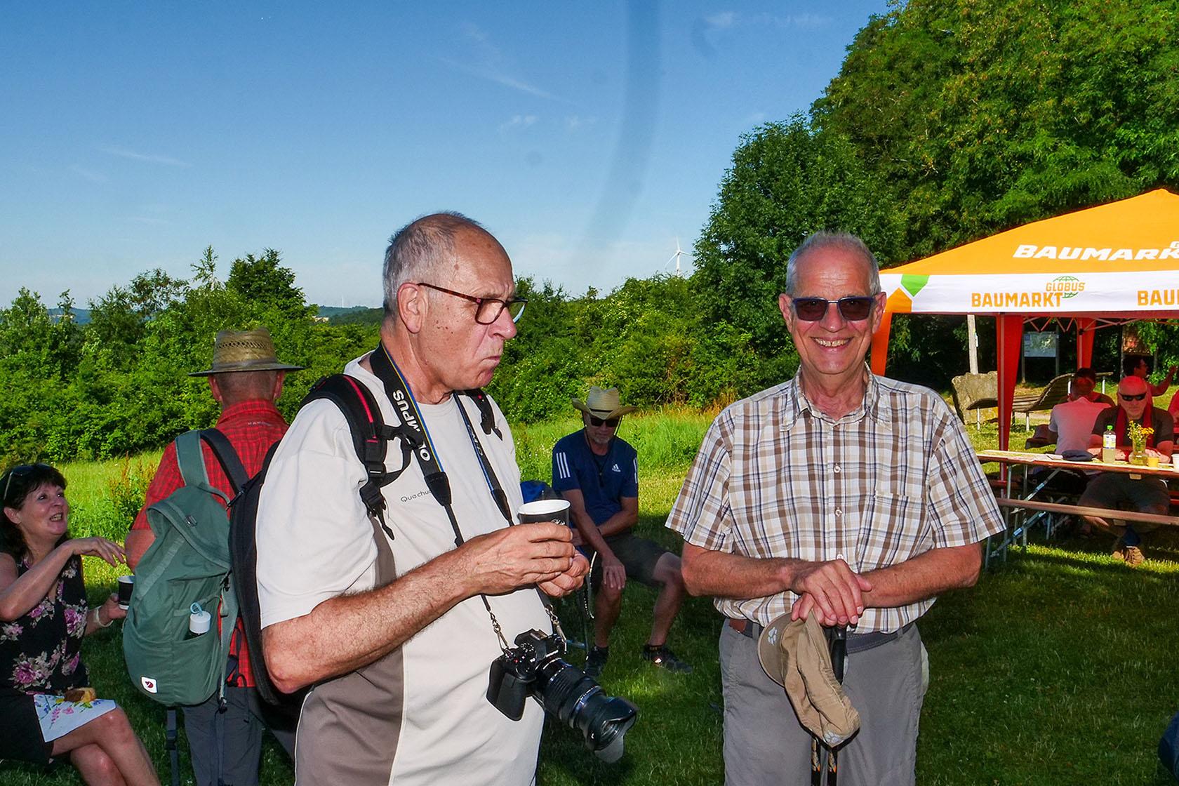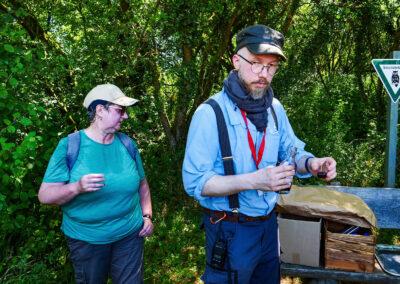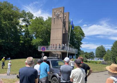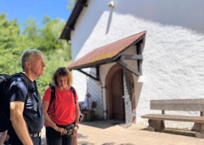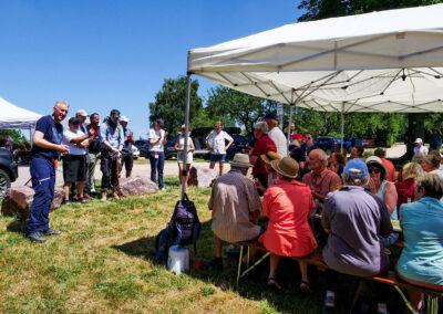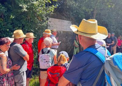 Ein kulinarischer und musikalischer Höhepunkt folgte an der St.-Oranna-Kapelle: Picknickkörbe vom Tintinger Hof, Éclairs & Croissants aus der Bäckerei in Merten. Zurück am Europadenkmal empfingen die Beruser Jäger die Gruppe mit einem Horn-Ständchen und saftigen Wildwürsten vom Grill. Mundart-Chansons von Edwin Bohlinger und Johannes Berrar rundeten die Veranstaltung mit einem musikalischen Genussmoment ab.