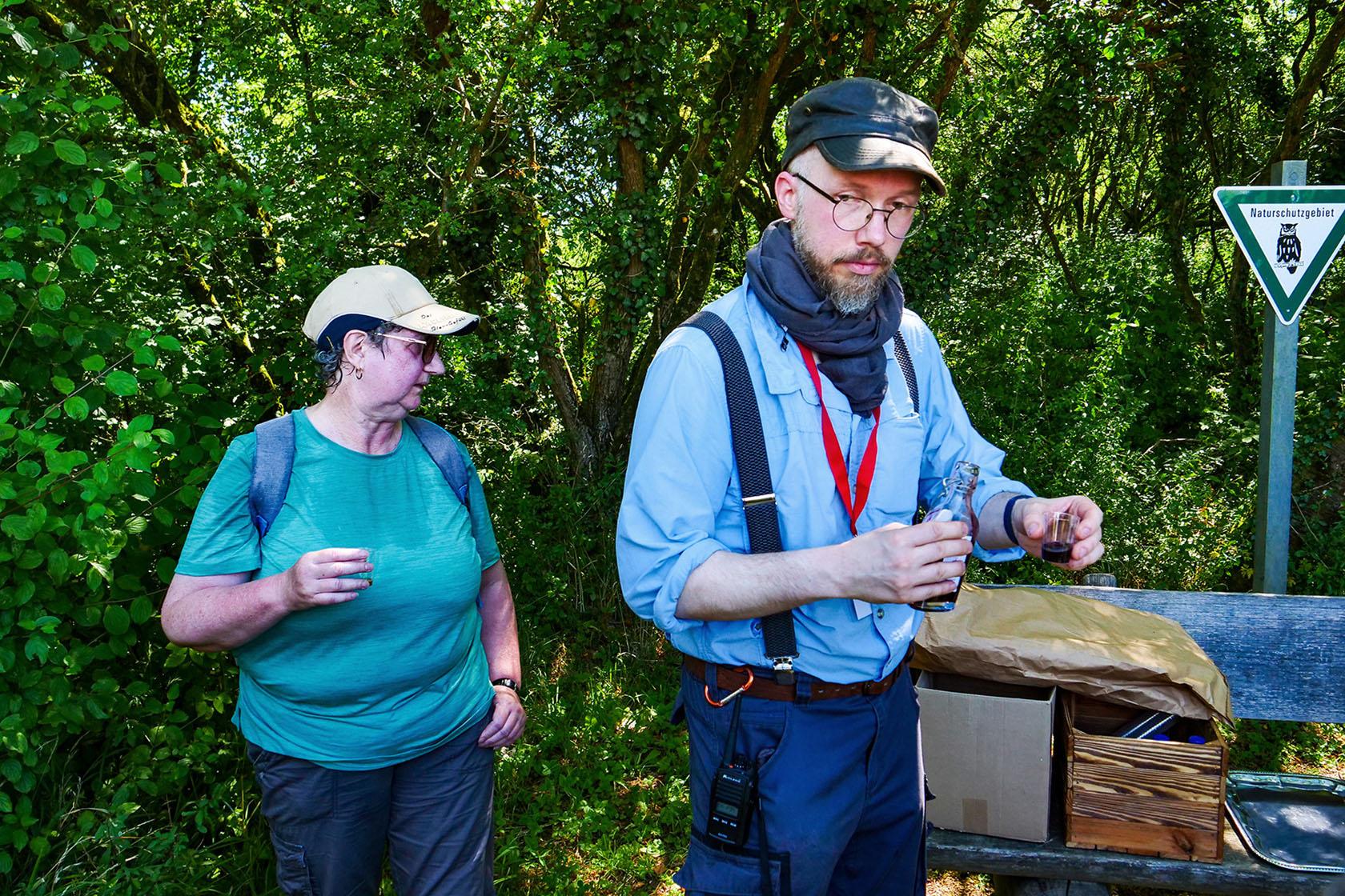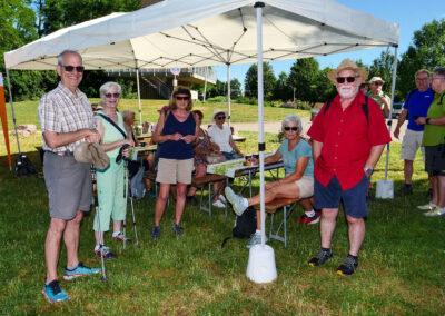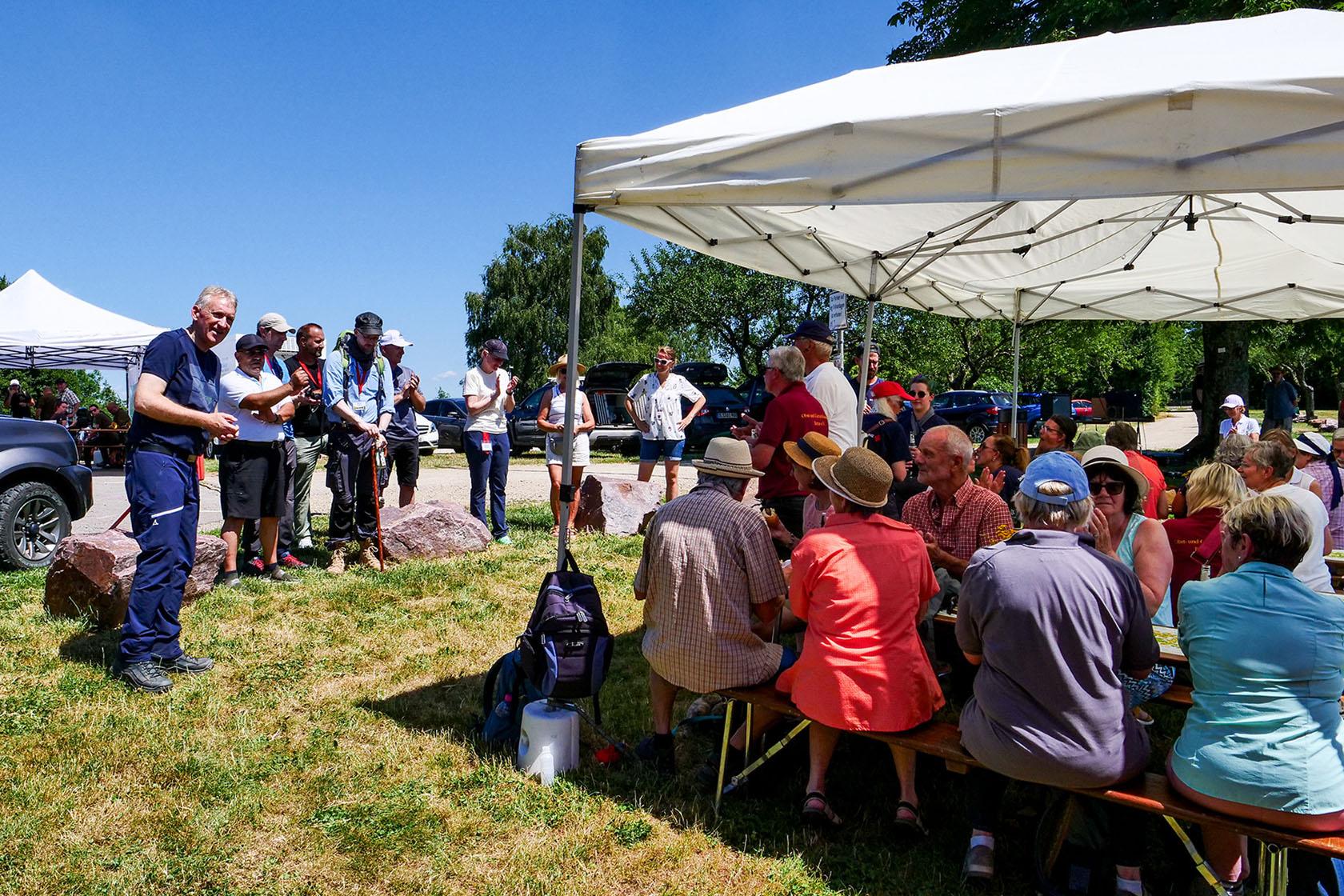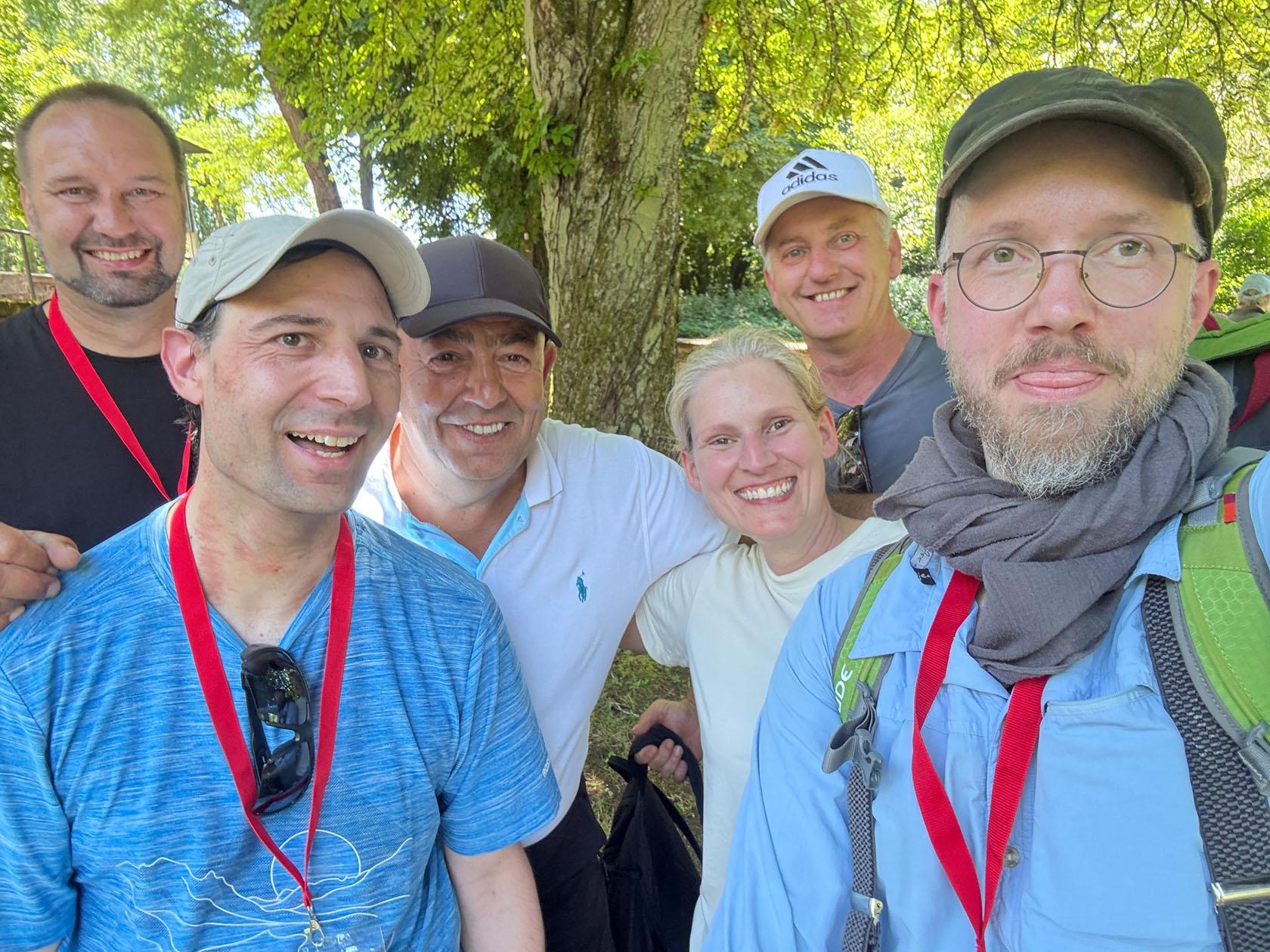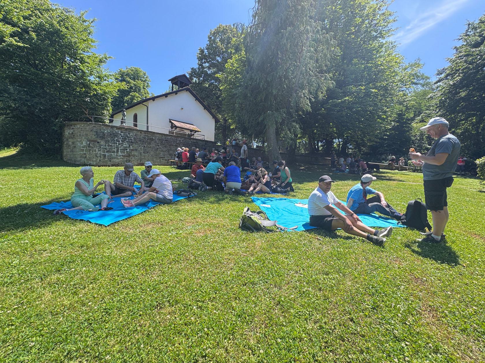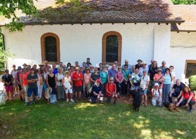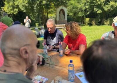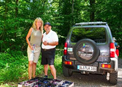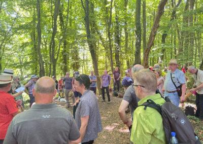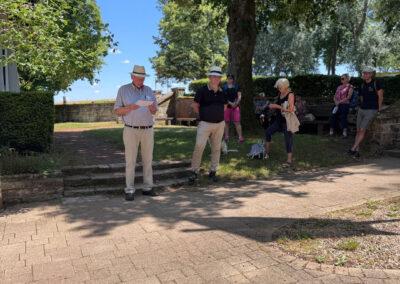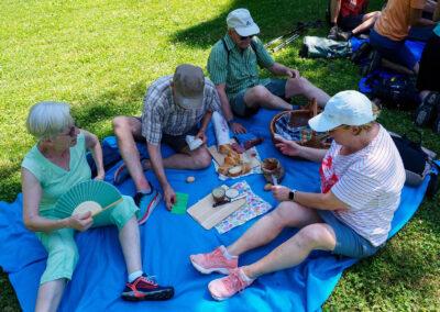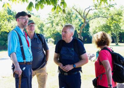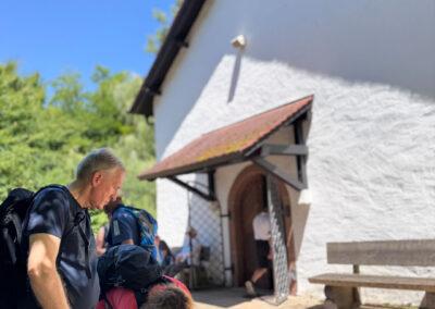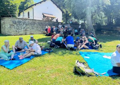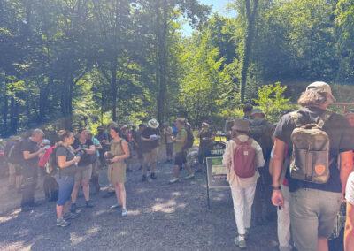 Ein kulinarischer und musikalischer Höhepunkt folgte an der St.-Oranna-Kapelle: Picknickkörbe vom Tintinger Hof, Éclairs & Croissants aus der Bäckerei in Merten. Zurück am Europadenkmal empfingen die Beruser Jäger die Gruppe mit einem Horn-Ständchen und saftigen Wildwürsten vom Grill. Mundart-Chansons von Edwin Bohlinger und Johannes Berrar rundeten die Veranstaltung mit einem musikalischen Genussmoment ab.