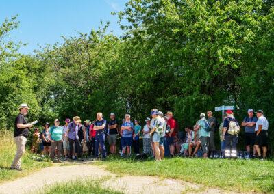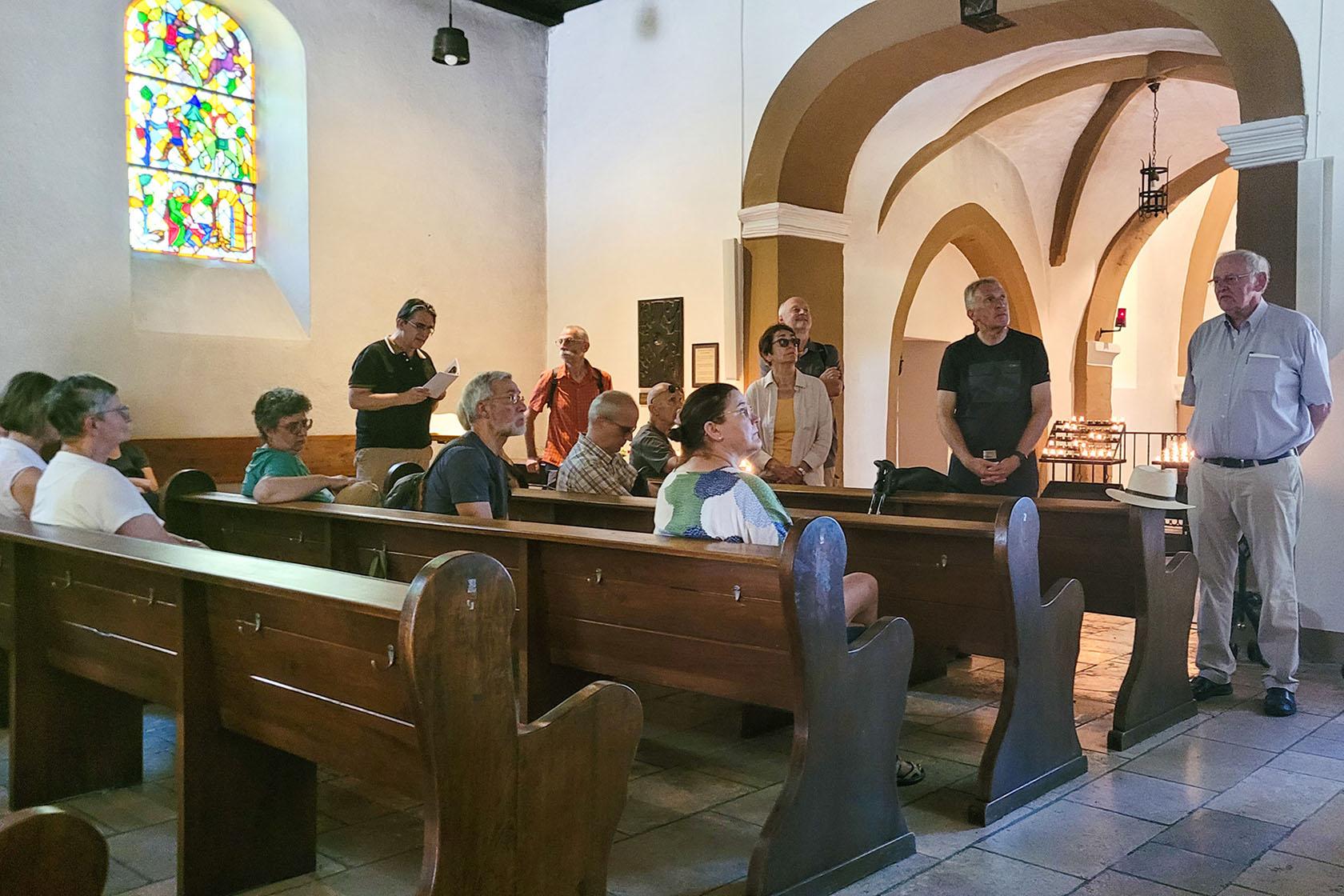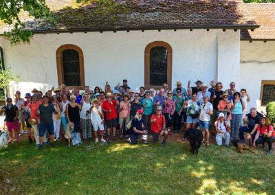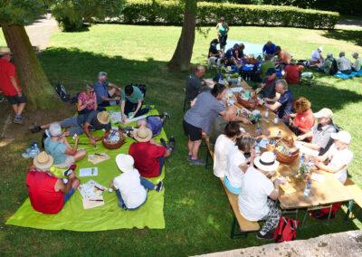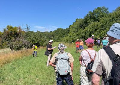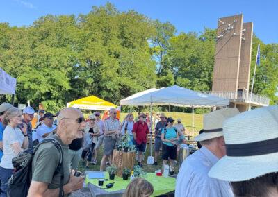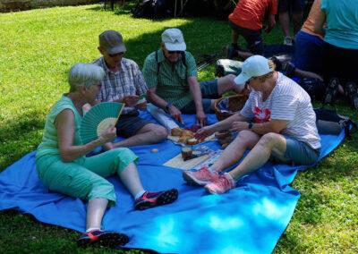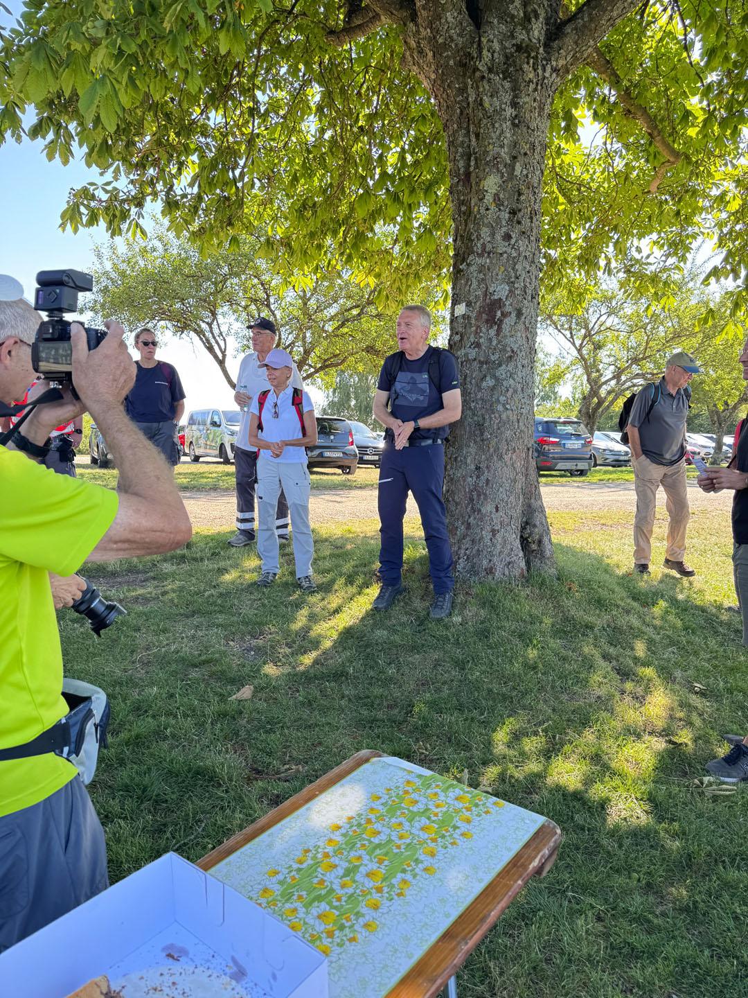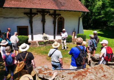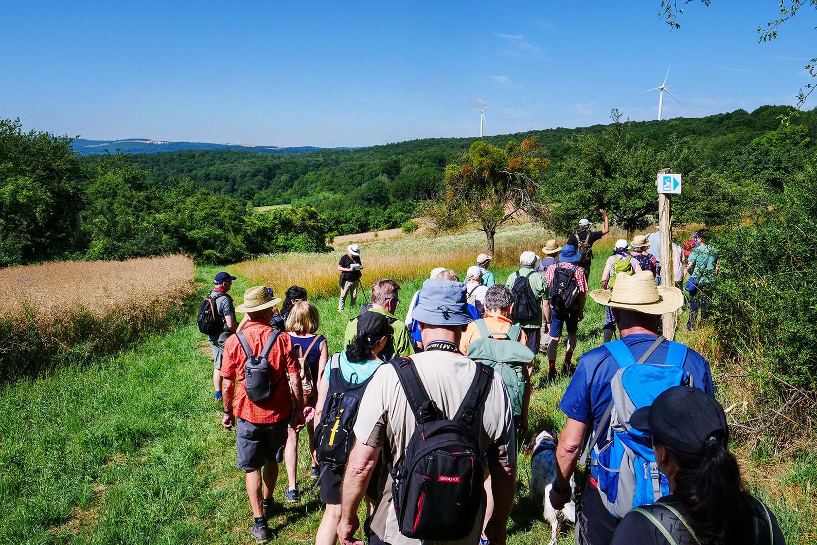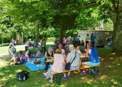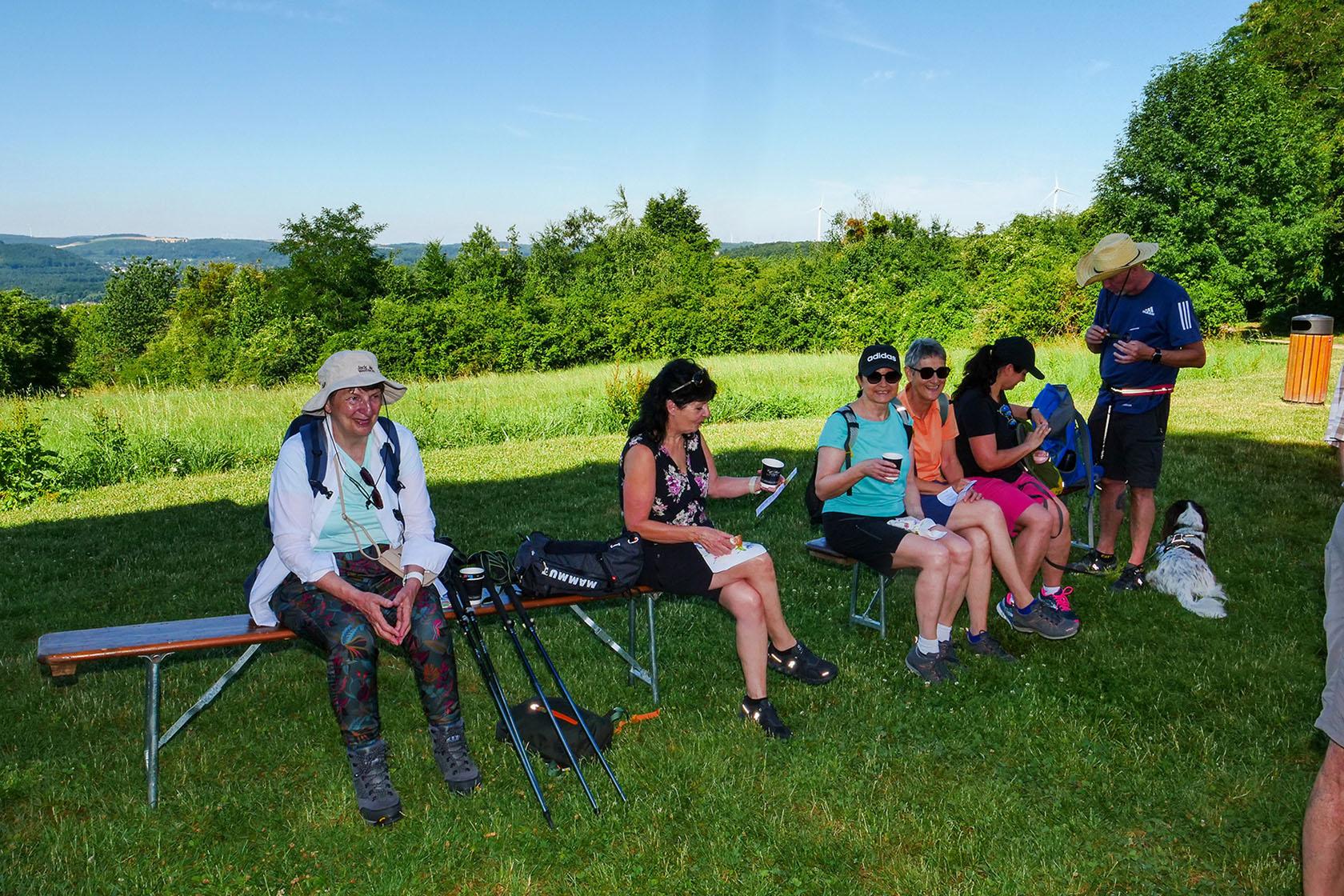 Ein kulinarischer und musikalischer Höhepunkt folgte an der St.-Oranna-Kapelle: Picknickkörbe vom Tintinger Hof, Éclairs & Croissants aus der Bäckerei in Merten. Zurück am Europadenkmal empfingen die Beruser Jäger die Gruppe mit einem Horn-Ständchen und saftigen Wildwürsten vom Grill. Mundart-Chansons von Edwin Bohlinger und Johannes Berrar rundeten die Veranstaltung mit einem musikalischen Genussmoment ab.