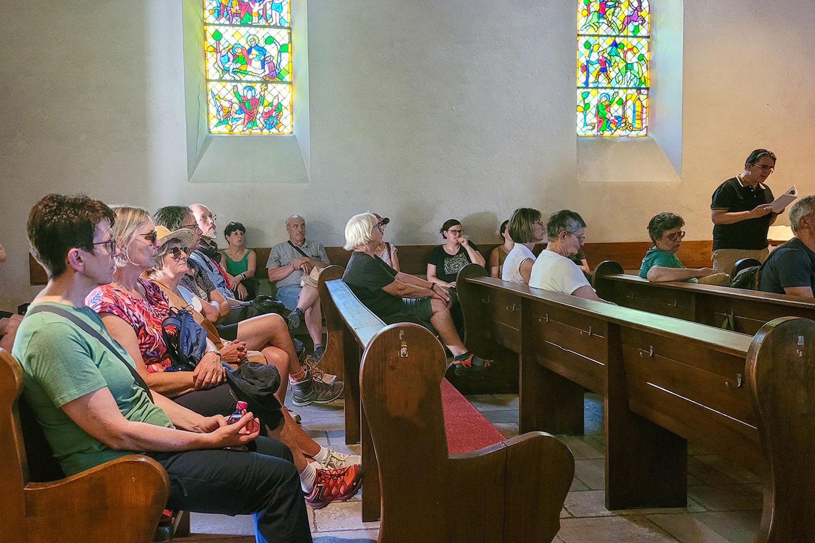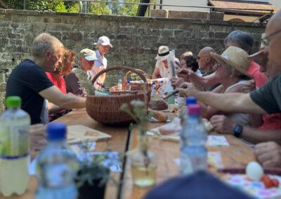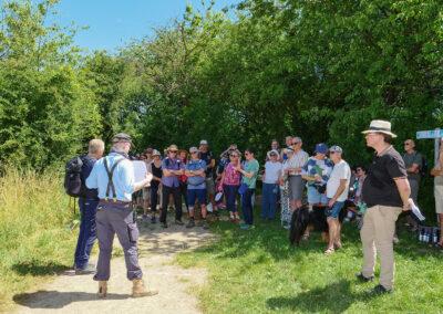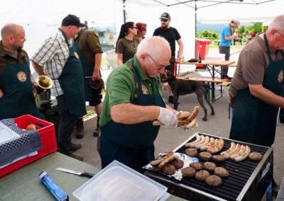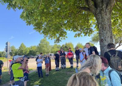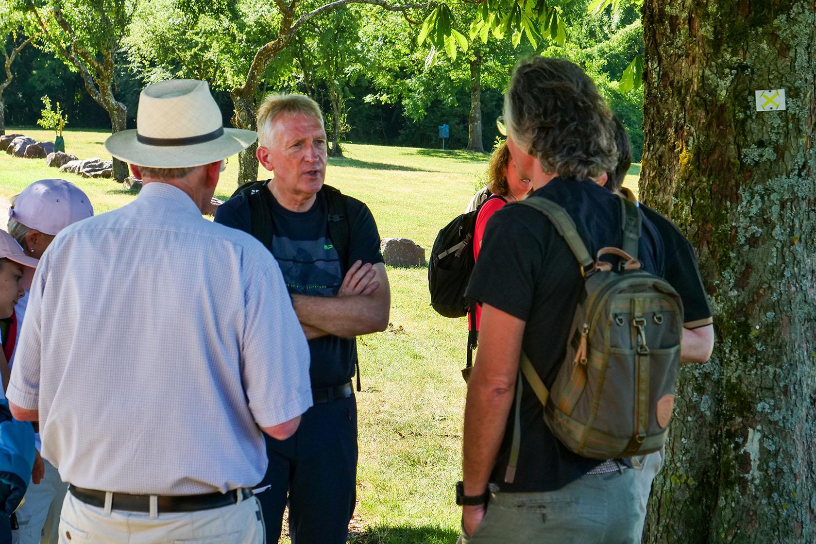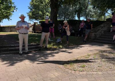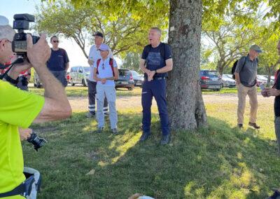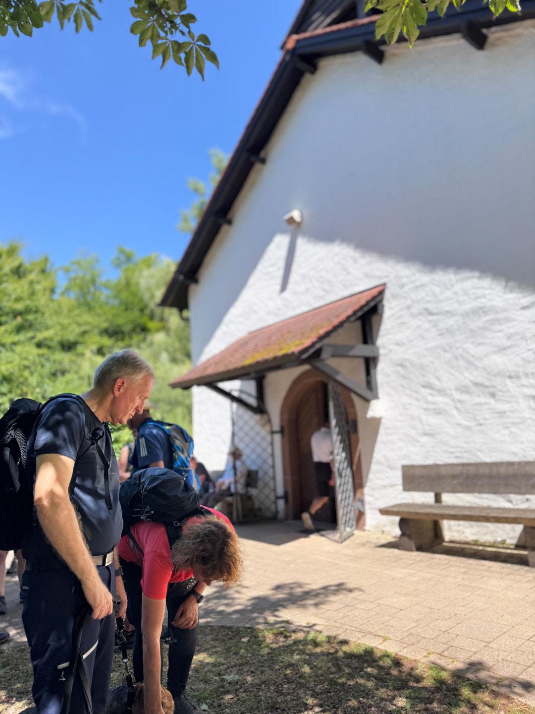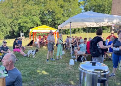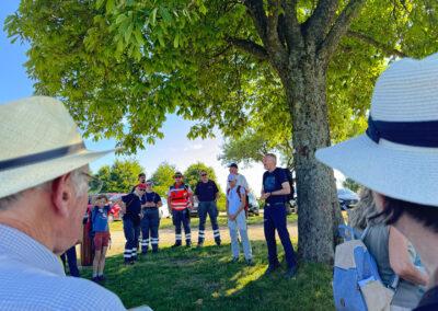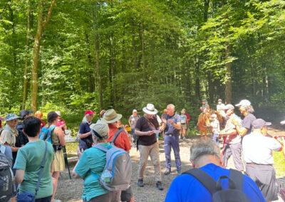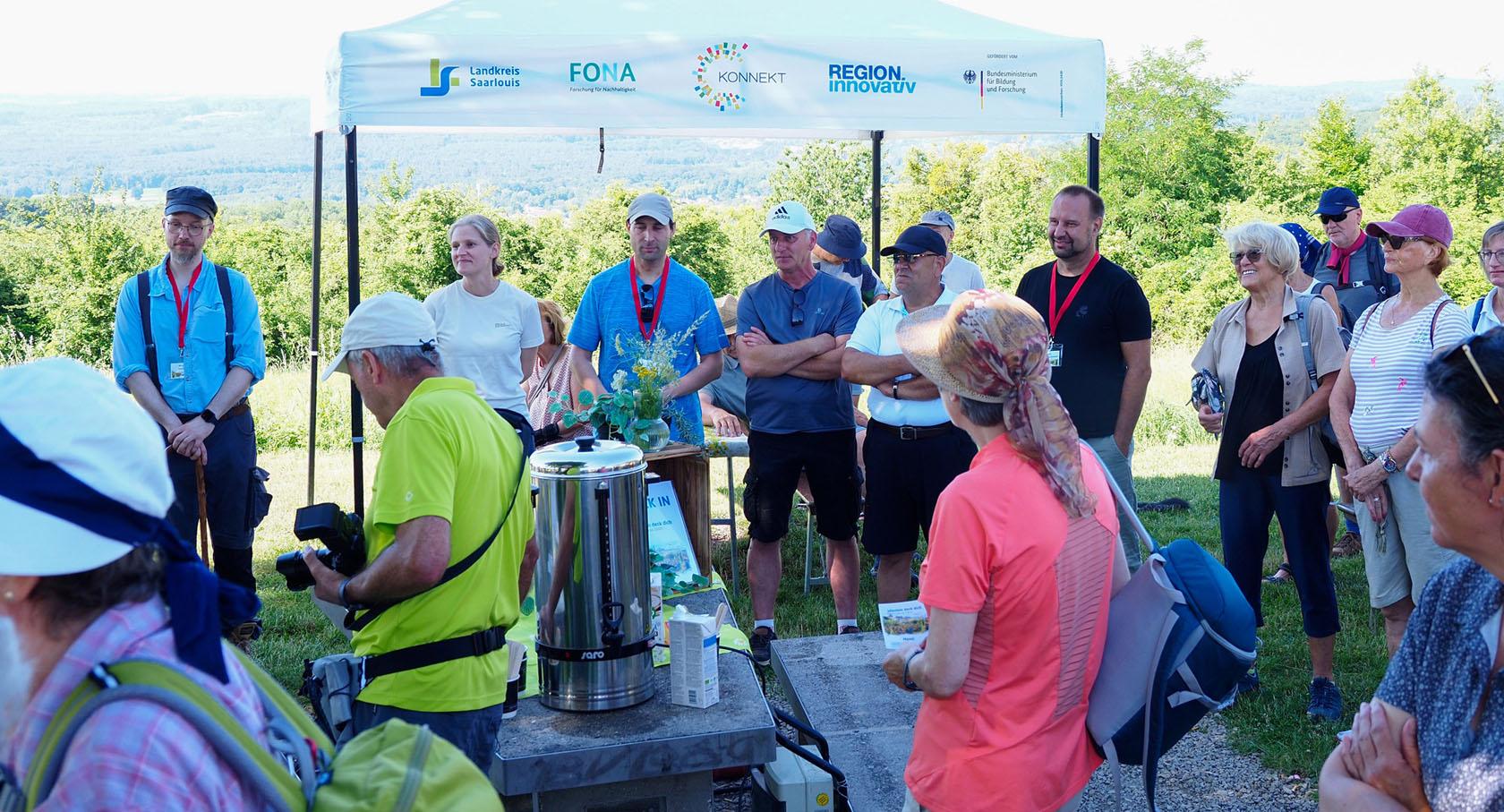 Ein kulinarischer und musikalischer Höhepunkt folgte an der St.-Oranna-Kapelle: Picknickkörbe vom Tintinger Hof, Éclairs & Croissants aus der Bäckerei in Merten. Zurück am Europadenkmal empfingen die Beruser Jäger die Gruppe mit einem Horn-Ständchen und saftigen Wildwürsten vom Grill. Mundart-Chansons von Edwin Bohlinger und Johannes Berrar rundeten die Veranstaltung mit einem musikalischen Genussmoment ab.