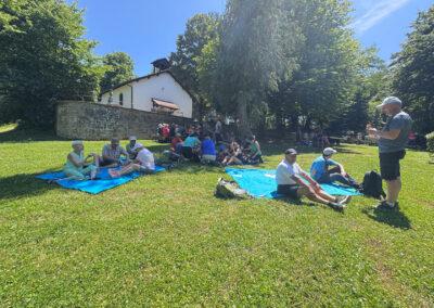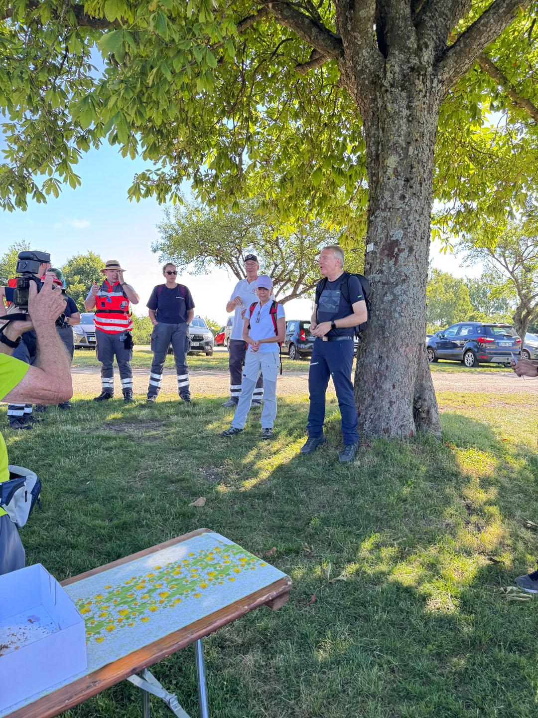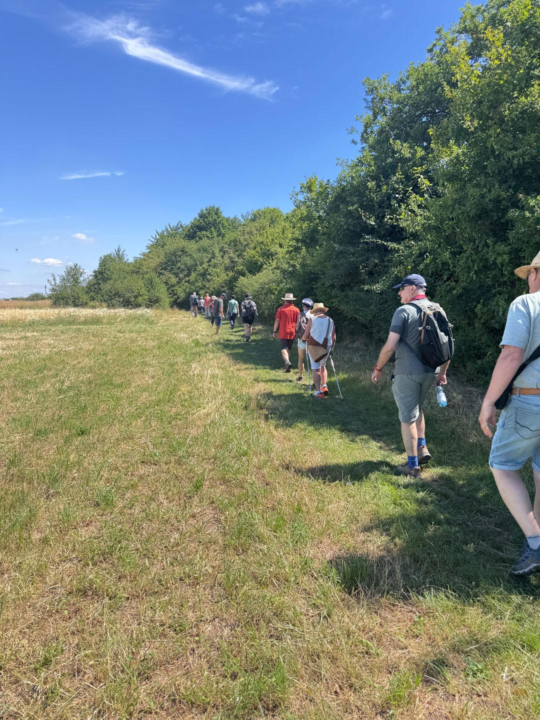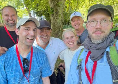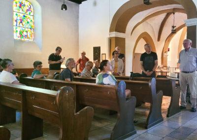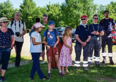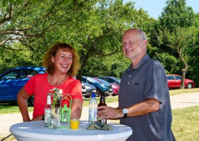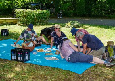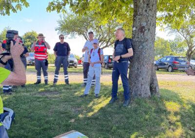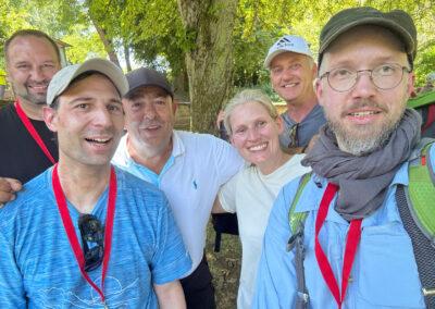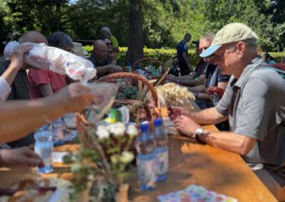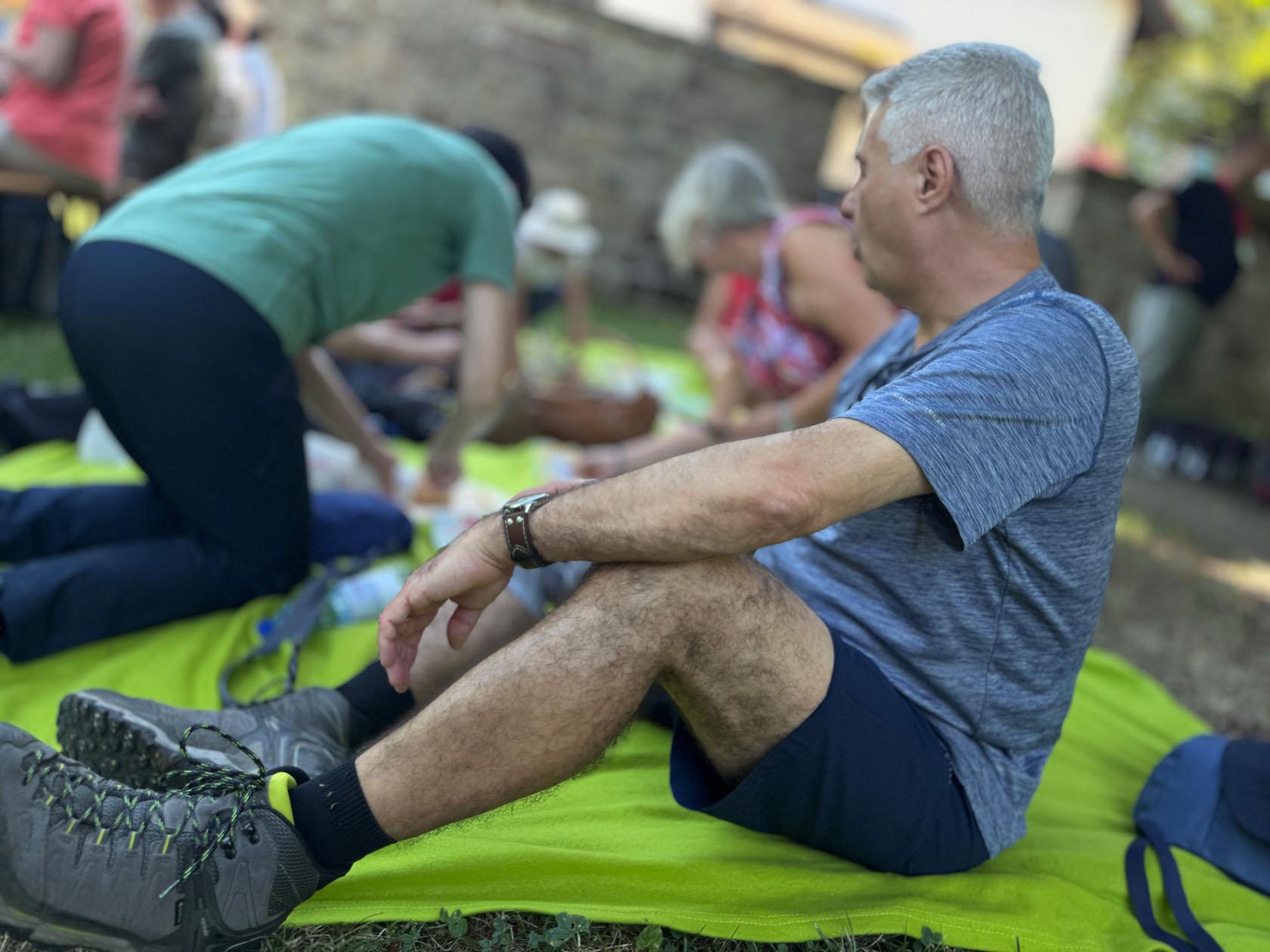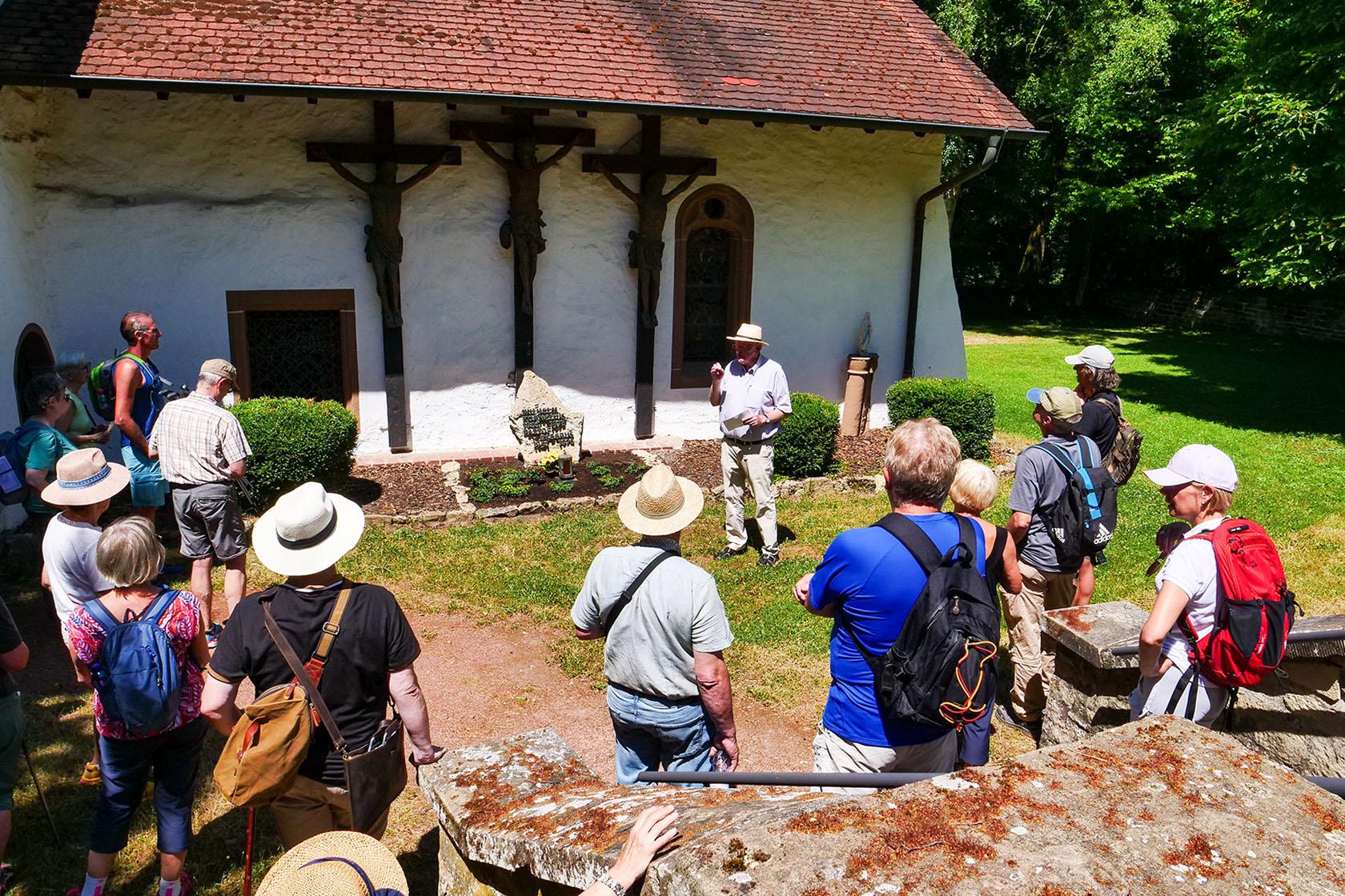 Ein kulinarischer und musikalischer Höhepunkt folgte an der St.-Oranna-Kapelle: Picknickkörbe vom Tintinger Hof, Éclairs & Croissants aus der Bäckerei in Merten. Zurück am Europadenkmal empfingen die Beruser Jäger die Gruppe mit einem Horn-Ständchen und saftigen Wildwürsten vom Grill. Mundart-Chansons von Edwin Bohlinger und Johannes Berrar rundeten die Veranstaltung mit einem musikalischen Genussmoment ab.