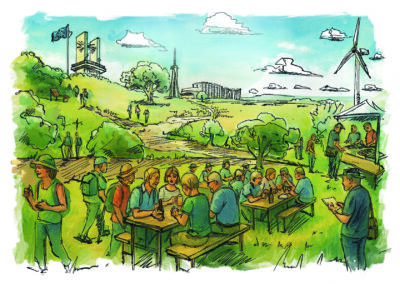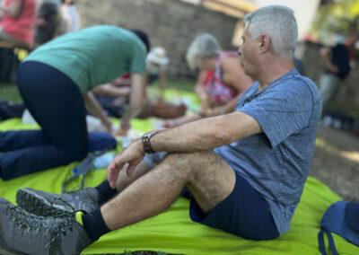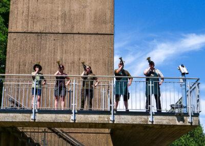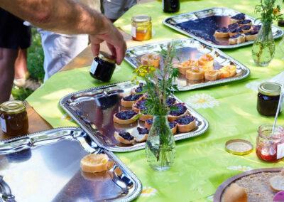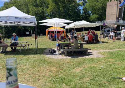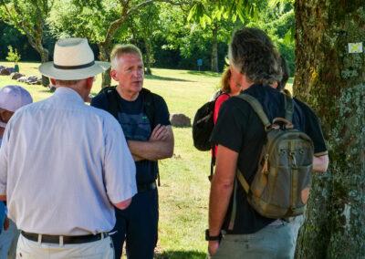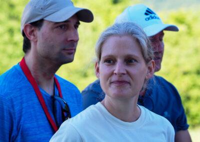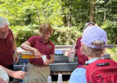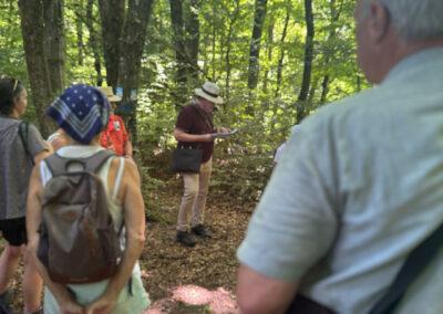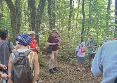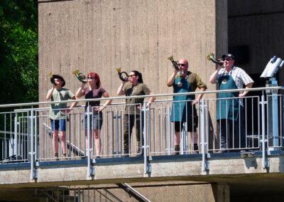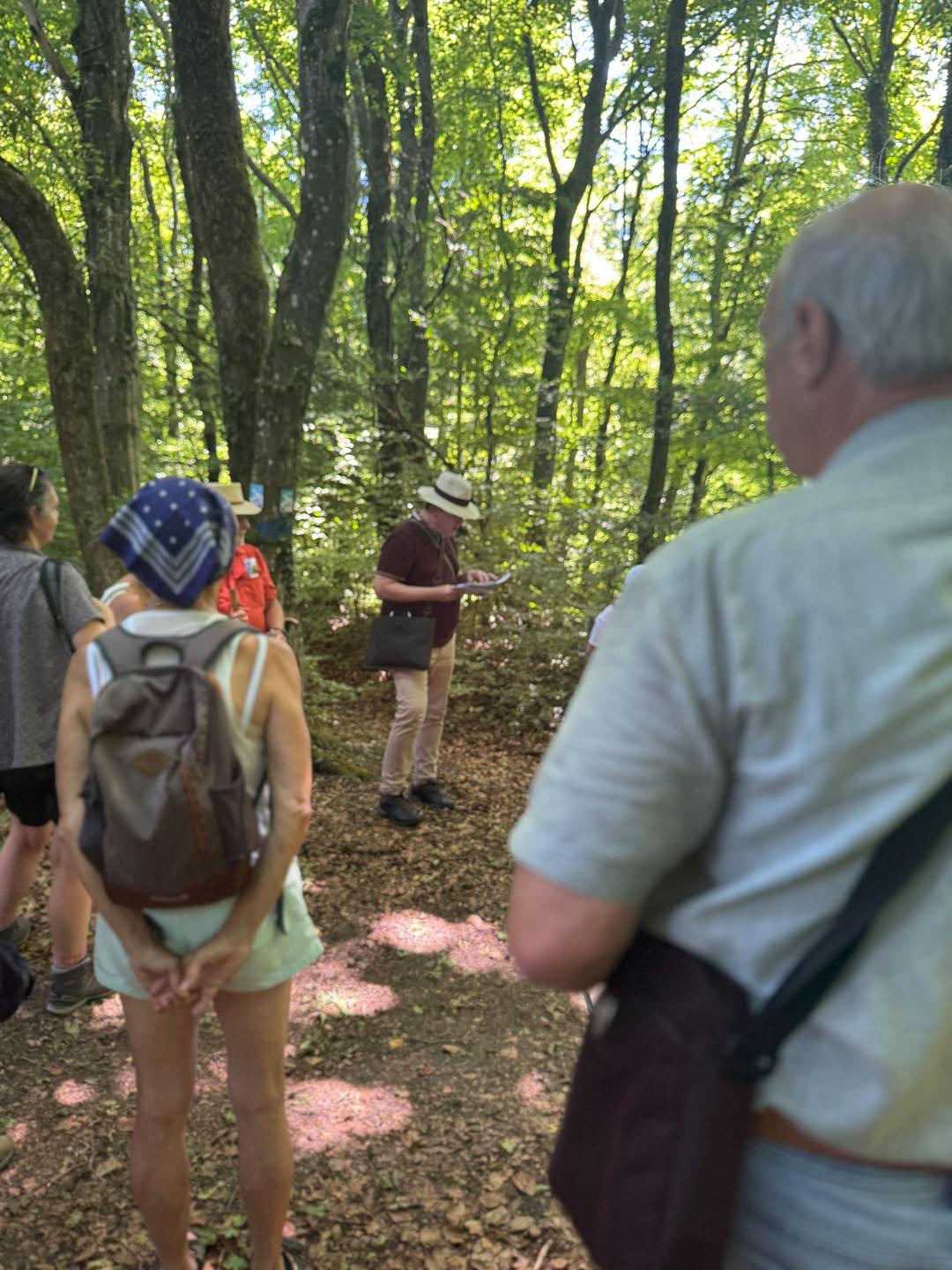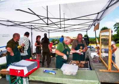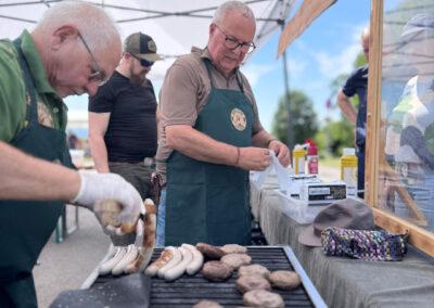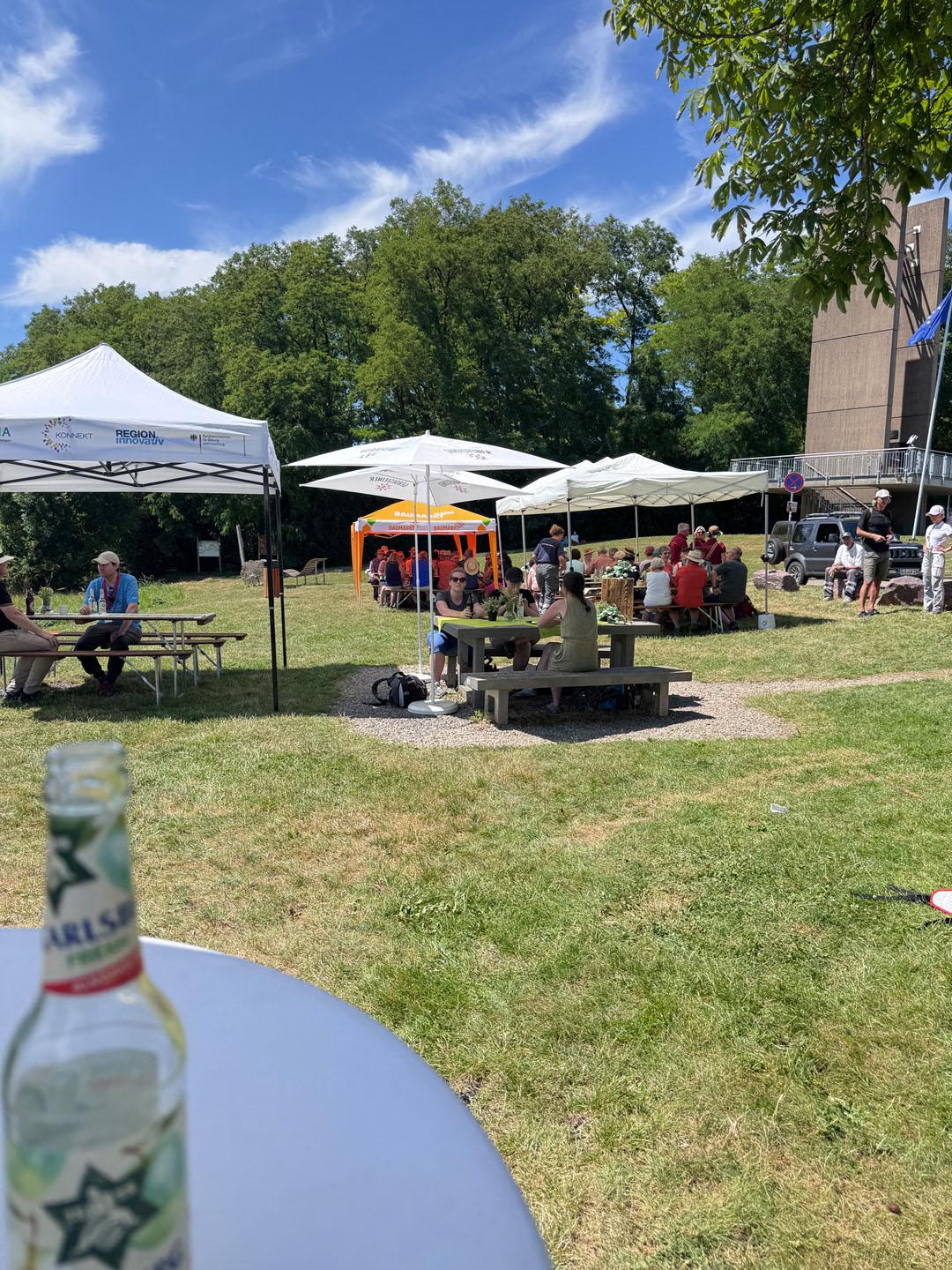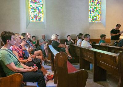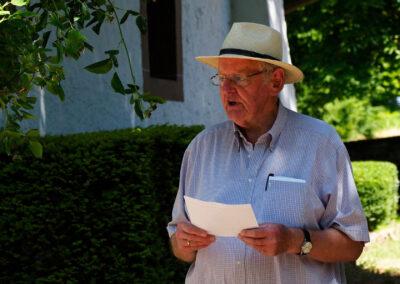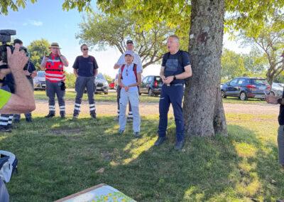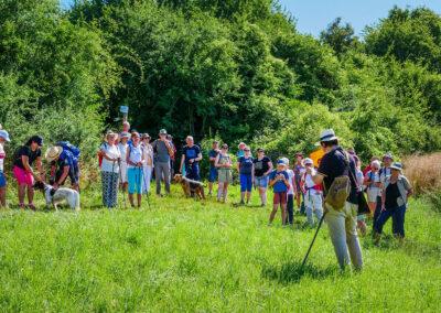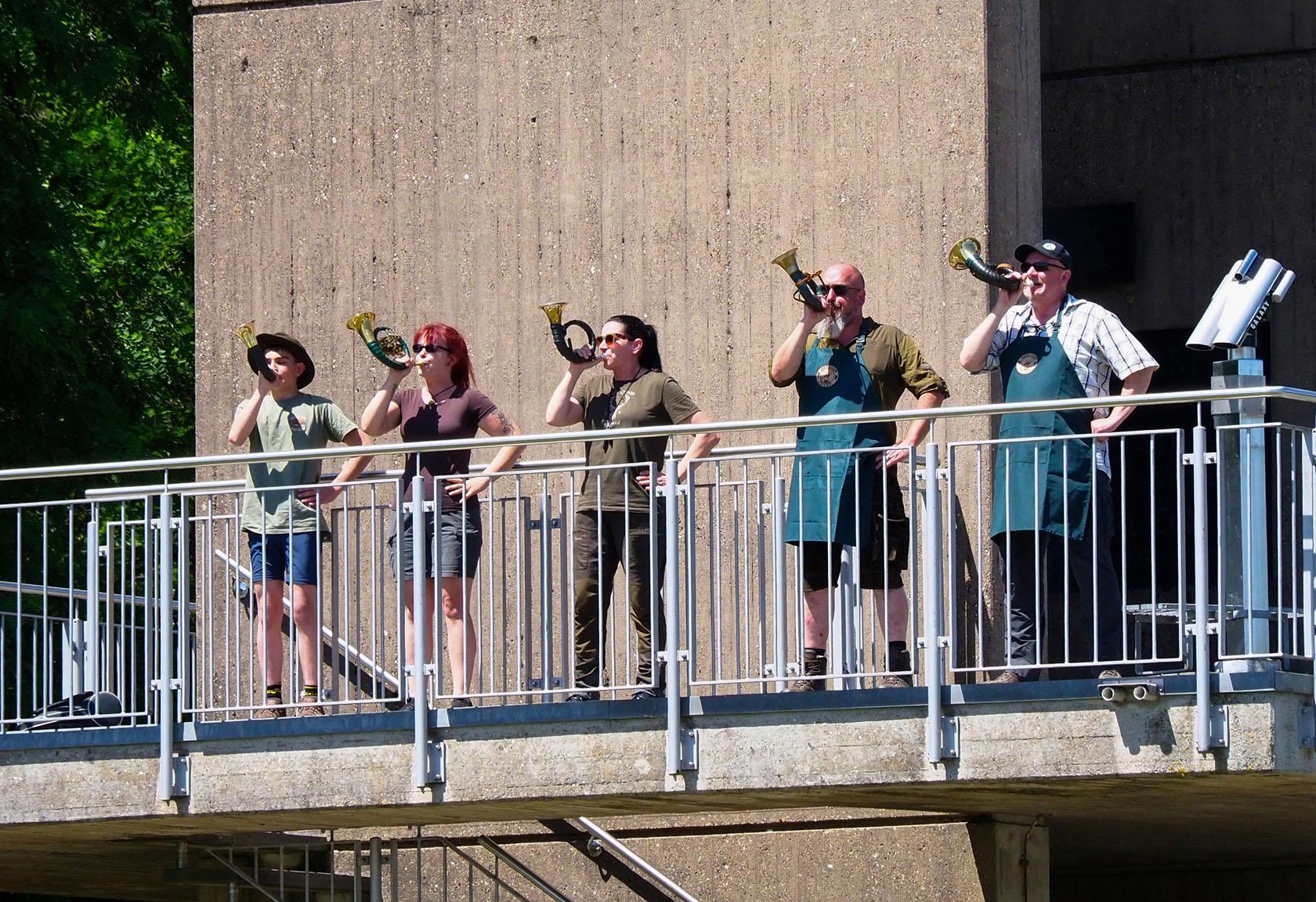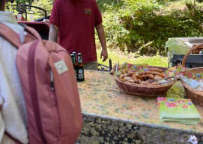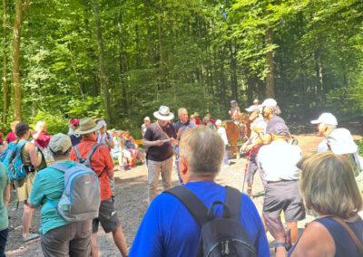Ein kulinarischer und musikalischer Höhepunkt folgte an der St.-Oranna-Kapelle: Picknickkörbe vom Tintinger Hof, Éclairs & Croissants aus der Bäckerei in Merten. Zurück am Europadenkmal empfingen die Beruser Jäger die Gruppe mit einem Horn-Ständchen und saftigen Wildwürsten vom Grill. Mundart-Chansons von Edwin Bohlinger und Johannes Berrar rundeten die Veranstaltung mit einem musikalischen Genussmoment ab.