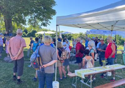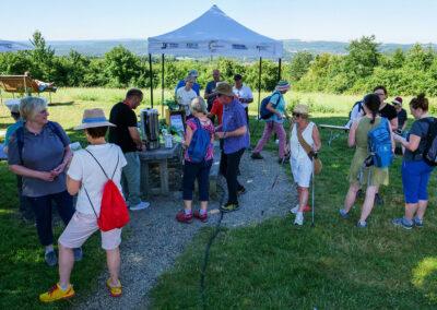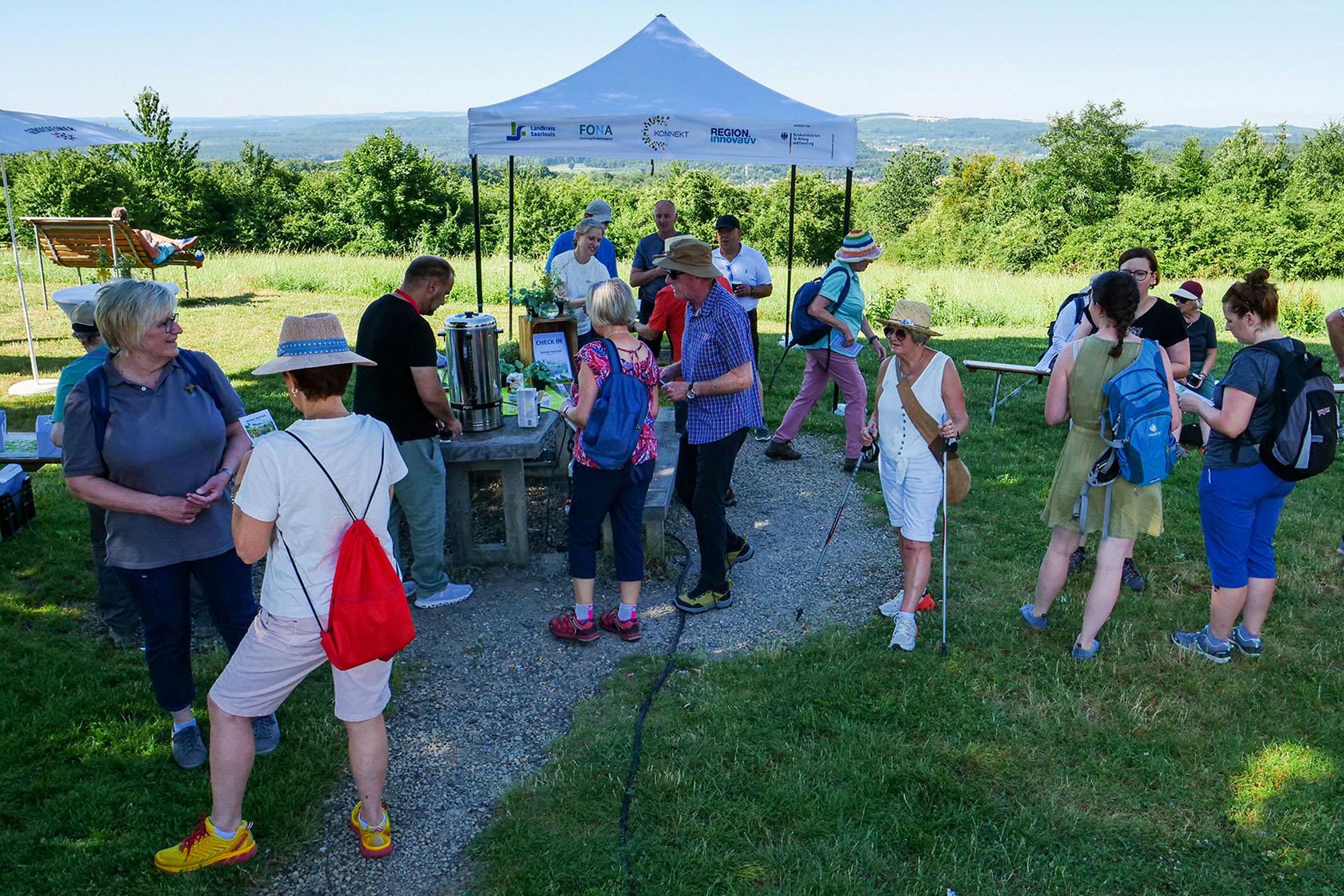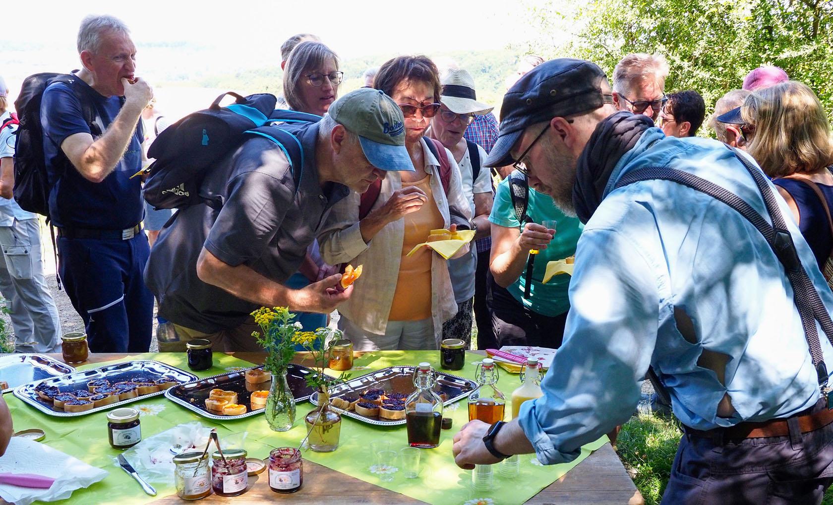 Die elfte Ausgabe der Kulinarik-Wanderung Wieslein deck dich führte am 29. Juni rund 80 Teilnehmende über den neuen Premium-Spazierwanderweg Traumschleifchen „Beruser Europablick“. Trotz hochsommerlicher 30 °C bot die knapp acht Kilometer lange Runde ein gelungenes Zusammenspiel aus Landschaft, Geschichte und fünf Genussstationen.