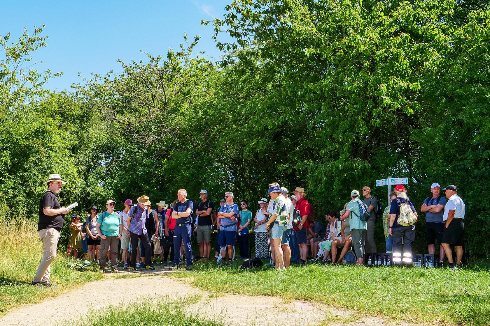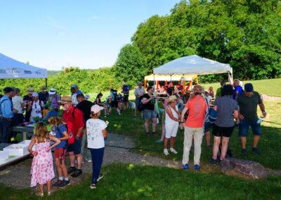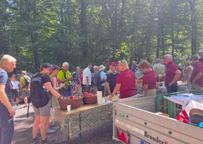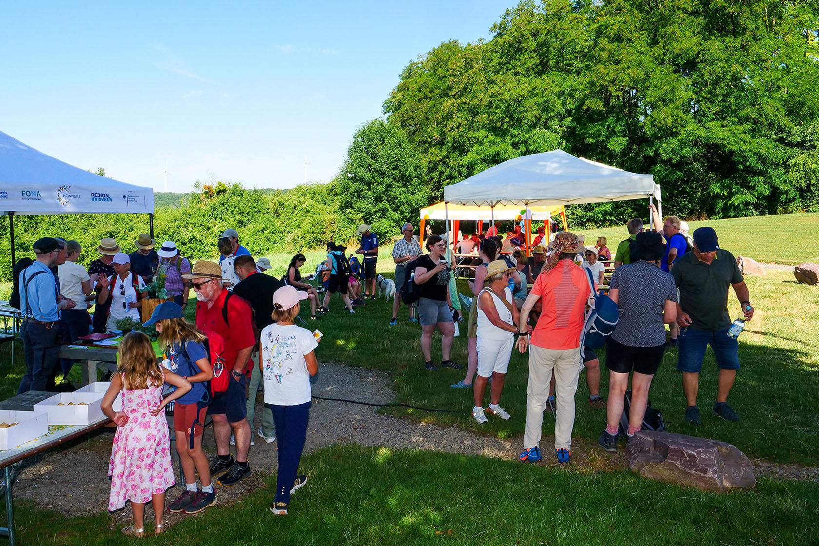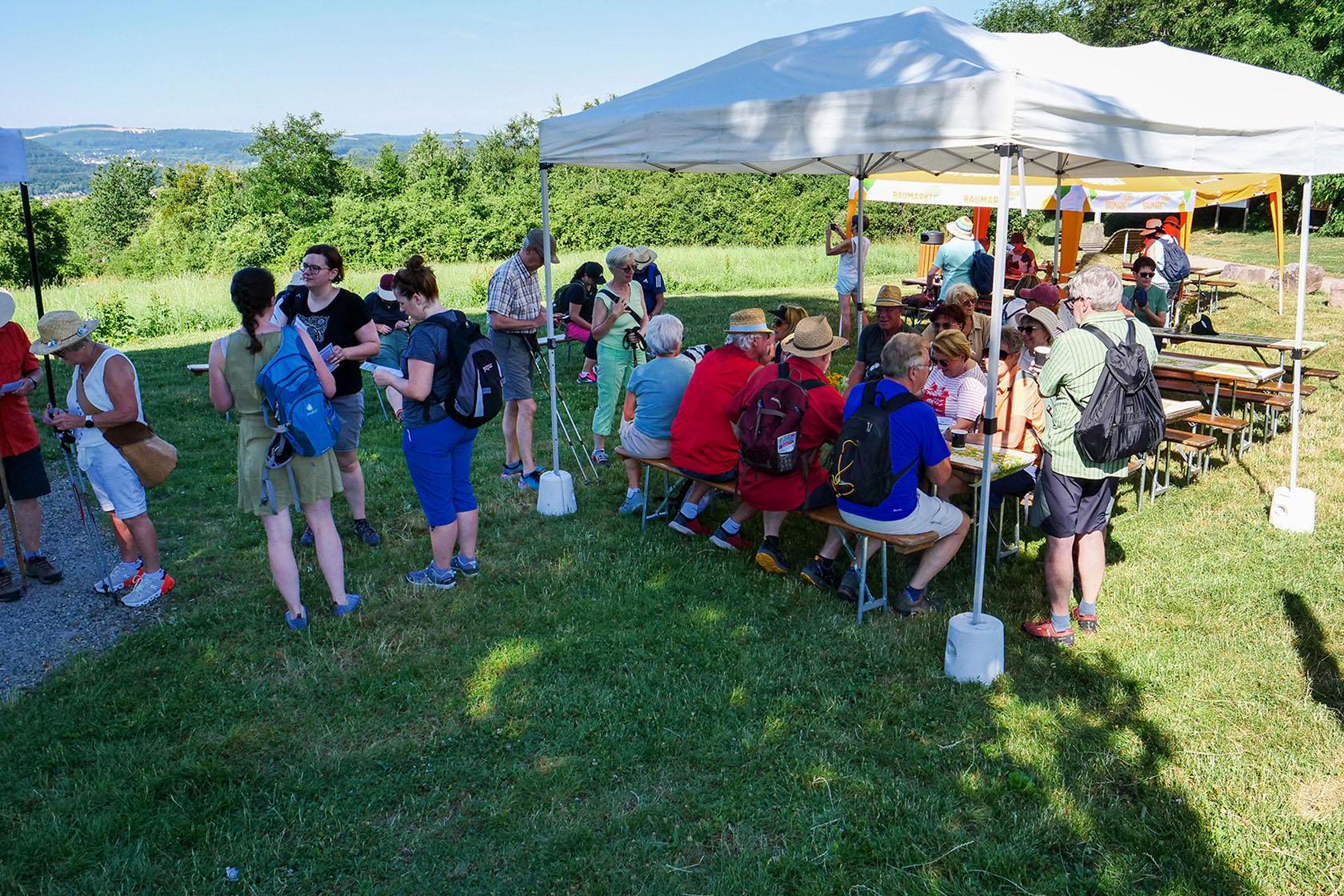 Die elfte Ausgabe der Kulinarik-Wanderung Wieslein deck dich führte am 29. Juni rund 80 Teilnehmende über den neuen Premium-Spazierwanderweg Traumschleifchen „Beruser Europablick“. Trotz hochsommerlicher 30 °C bot die knapp acht Kilometer lange Runde ein gelungenes Zusammenspiel aus Landschaft, Geschichte und fünf Genussstationen.